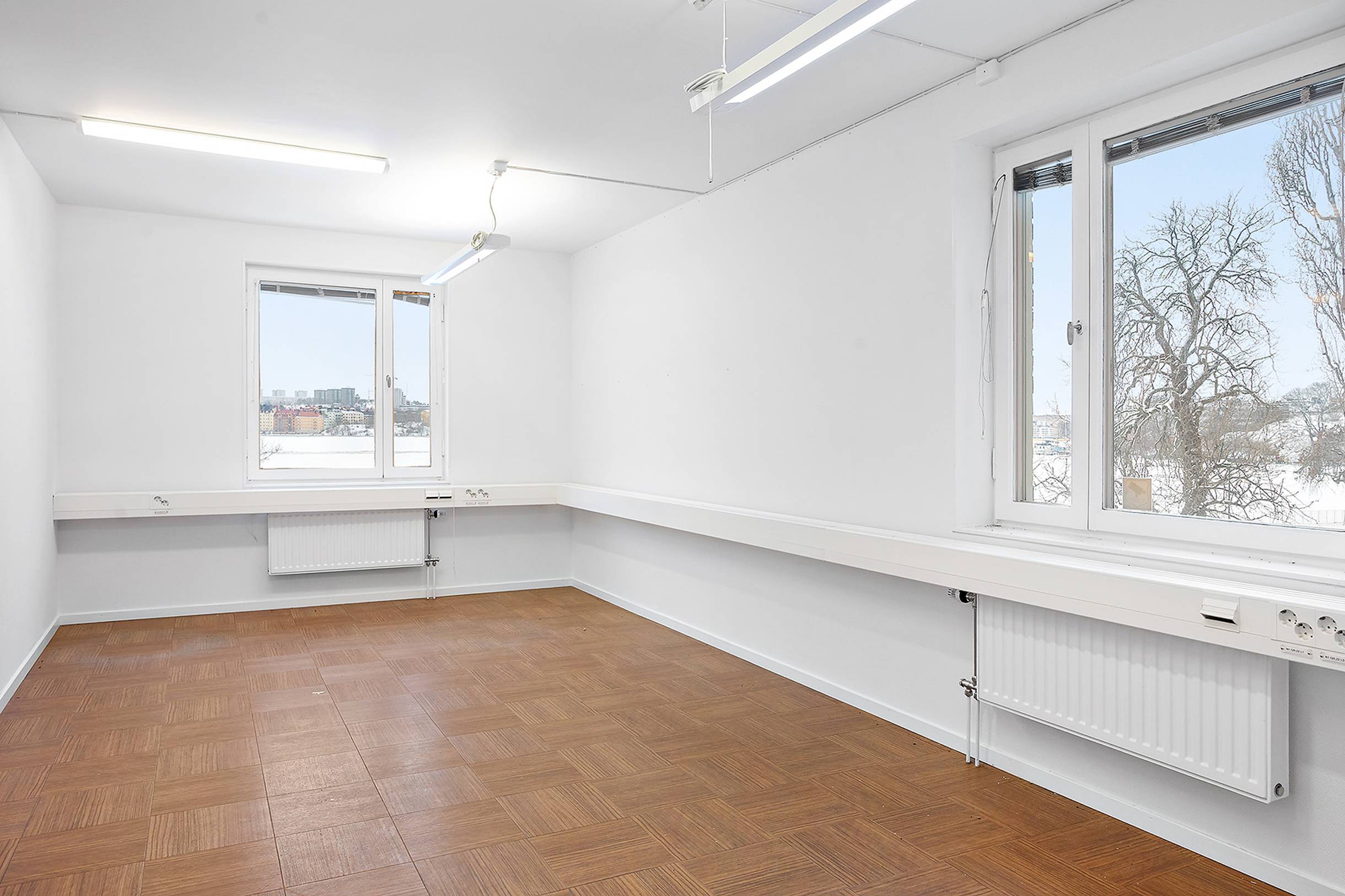 På Wivalliusgatan 13 ligger detta välplanerade kontor om 140 kvm. Passar perfekt för ett mindre bolag som har behov av kontor och goda förvaringsmöjligheter. Lokalen är ljus och har en väldigt fin utsikt över Riddarfjärden. Fönster längs hela fasaden i samtliga kontor. Lokalen har två entréer och nås via hissar i trapphuset eller sidodörren i trappan som går genom huset ner mot vattnet.