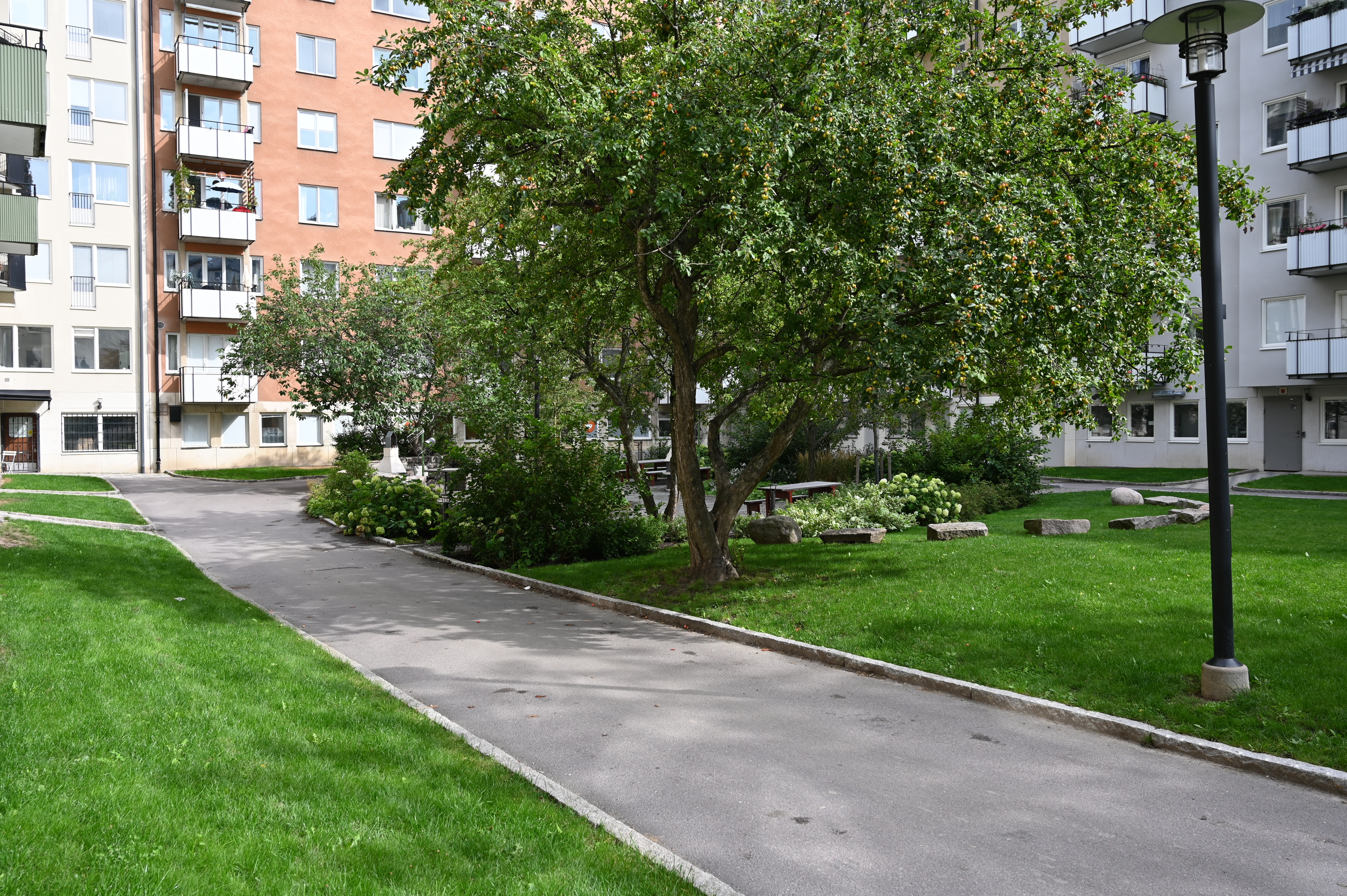 På bekvämt promenadavstånd nås Fältöversten och Karlaplan med all tänkbar service. I området kring fastigheten finns många trevliga restauranger samt butiker, systembolag, apotek och gym.