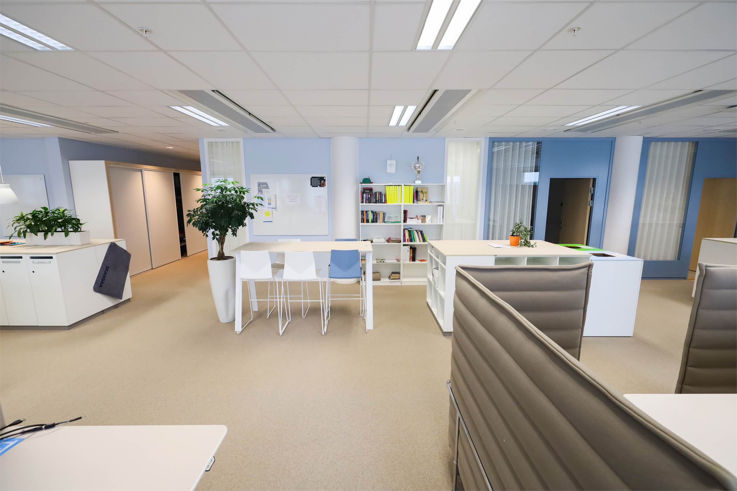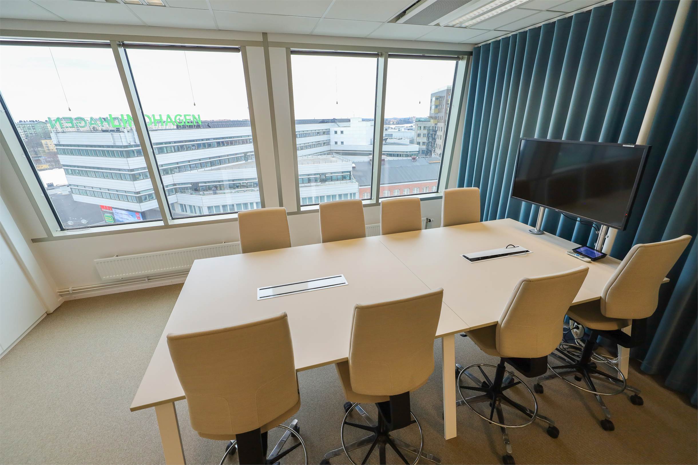 Ljusa moderna lokaler med öppen planlösning på plan 7 eller 9-10. Plan 9 har egen balkong med sol under lunchen.