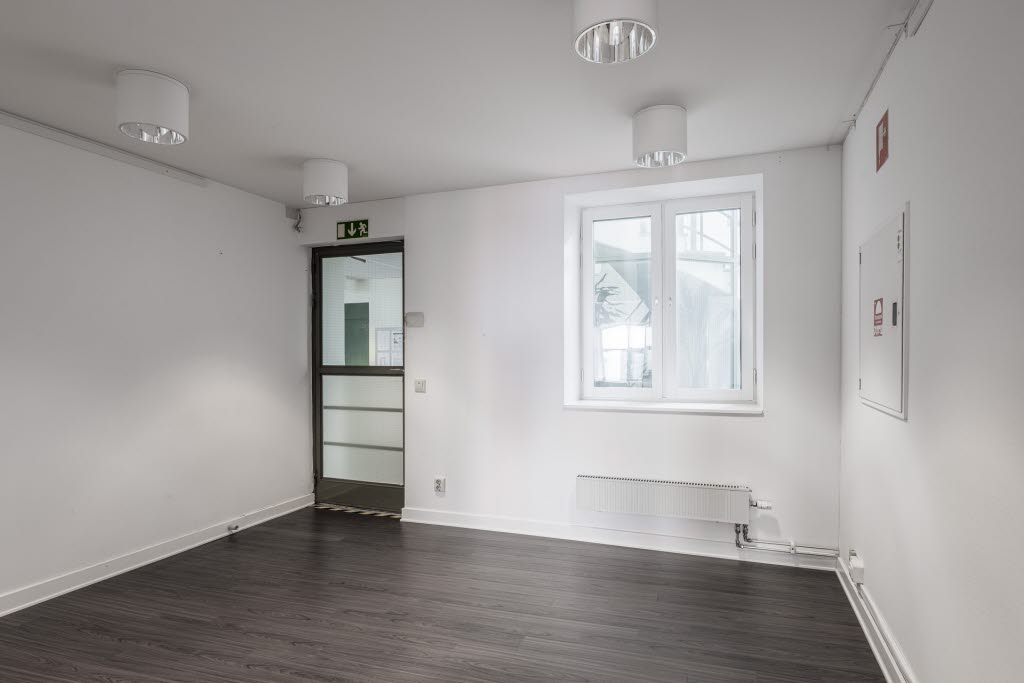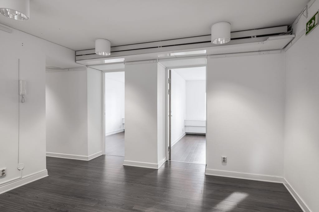 Kontoret inrymmer ett flertal kontorsrum i varierande storlek, pentry- och personalutrymmen och en liten lounge.
