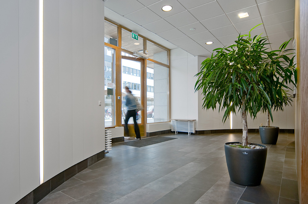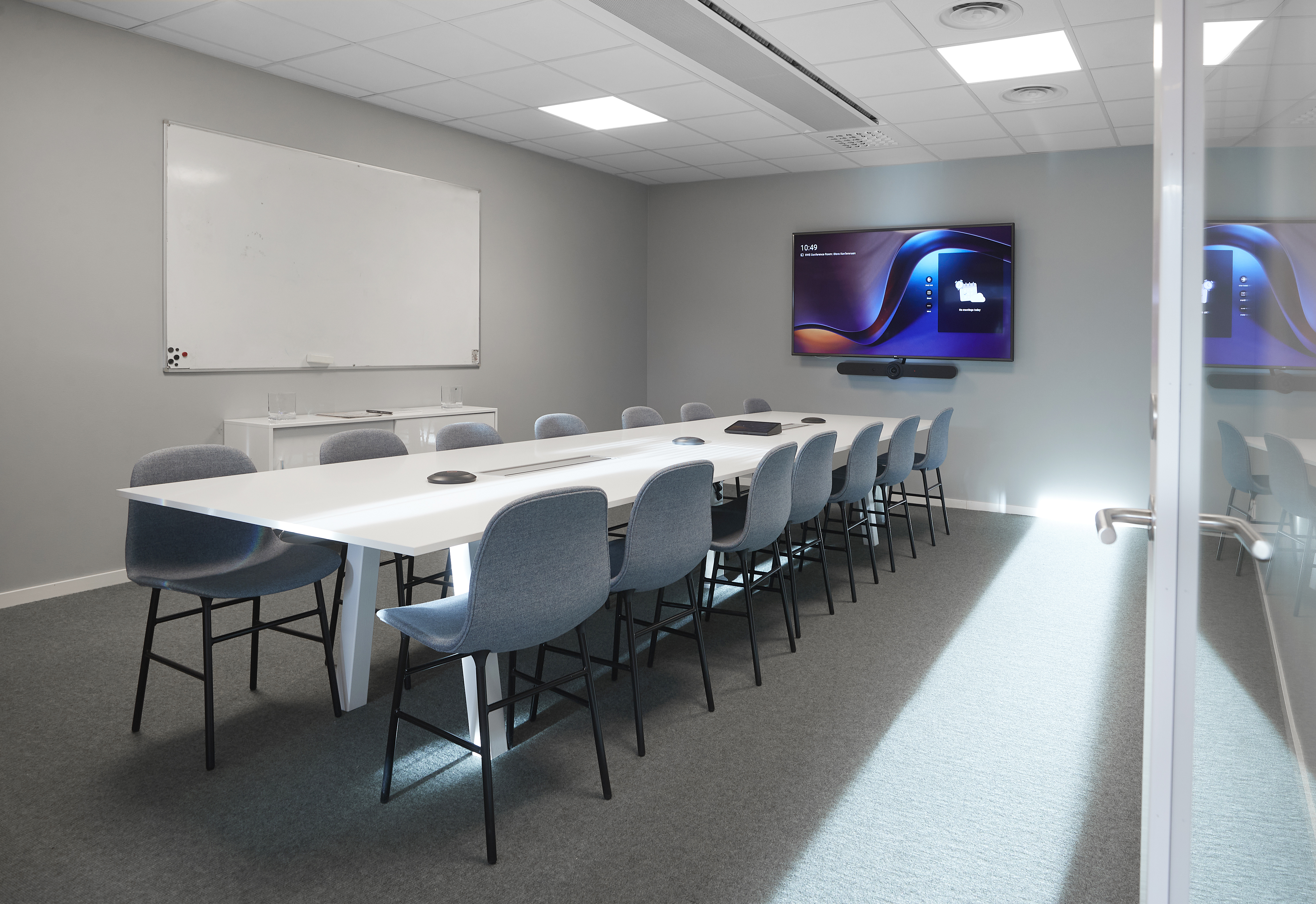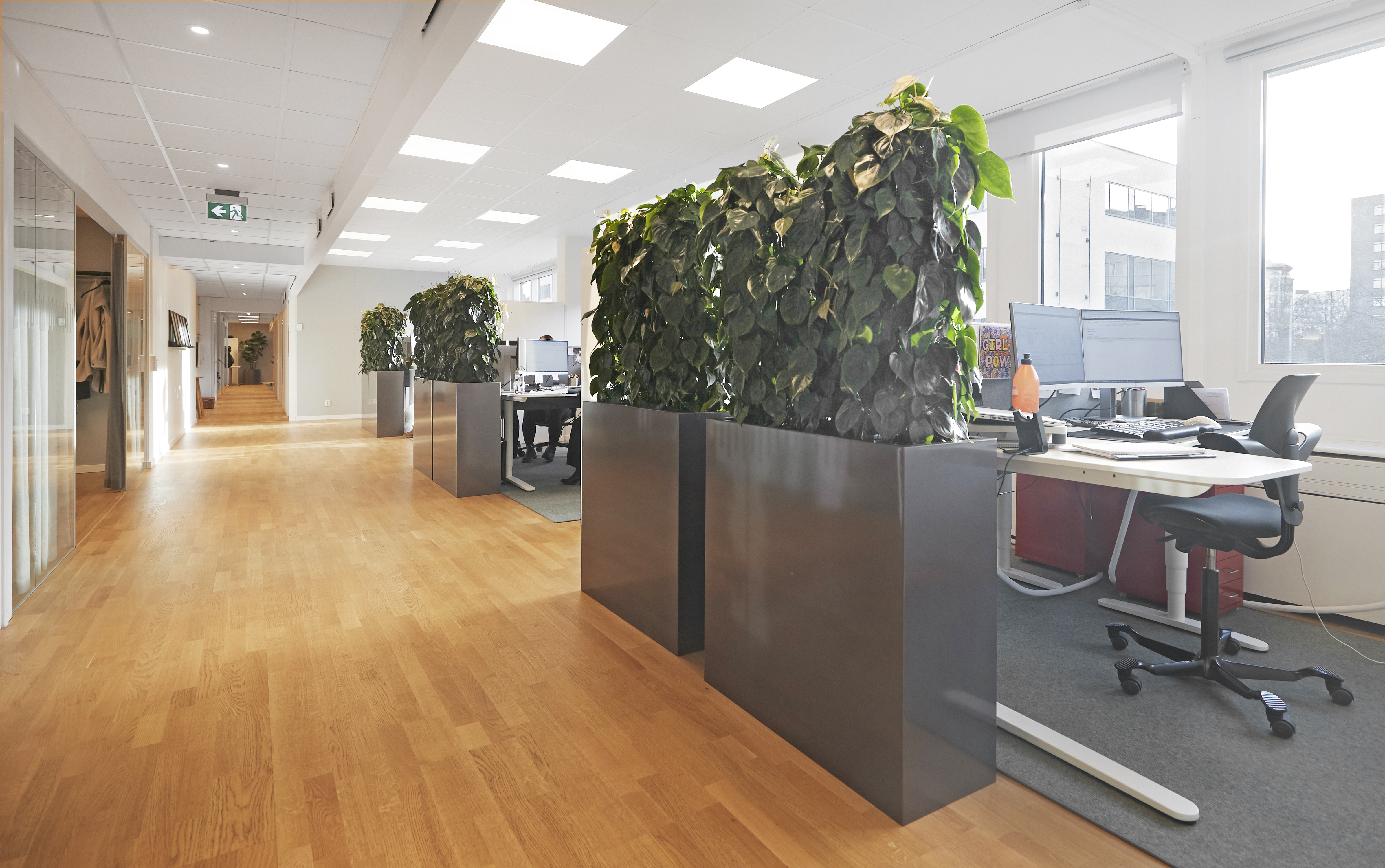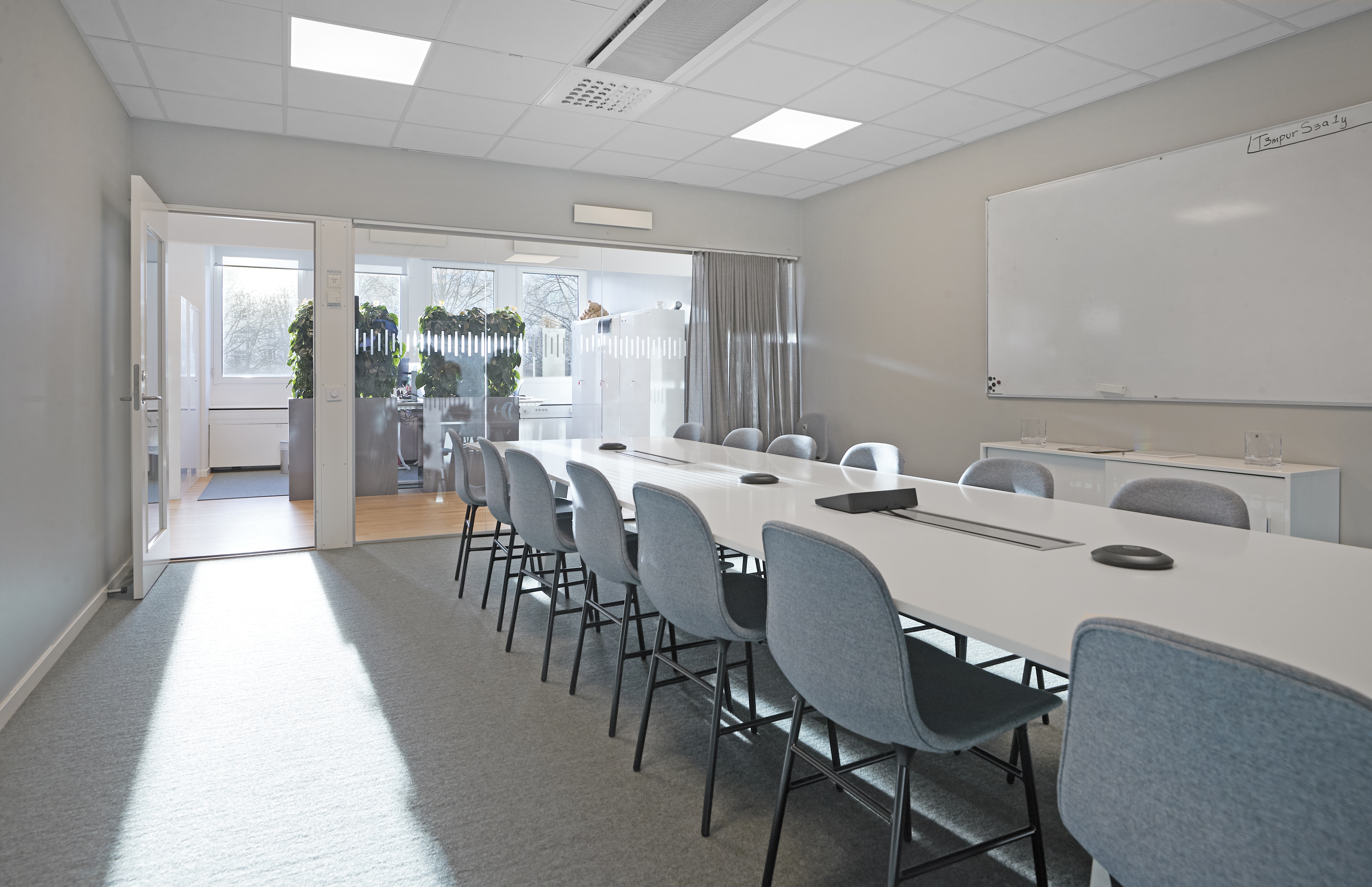 Kontoret är 413 kvm och har 26 arbetsplatser, 3 mötesrum, 3 toaletter och ett rymligt kök.