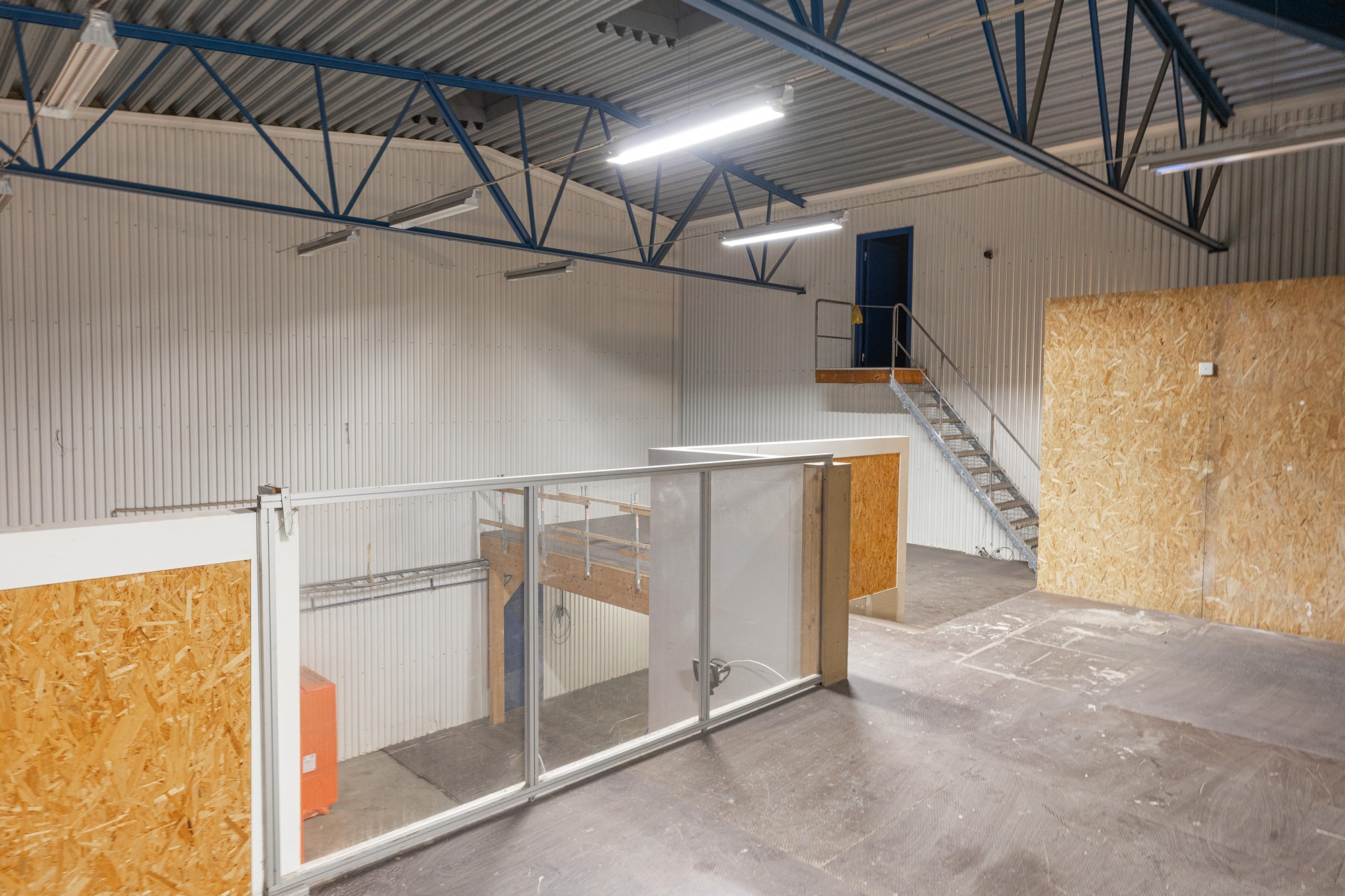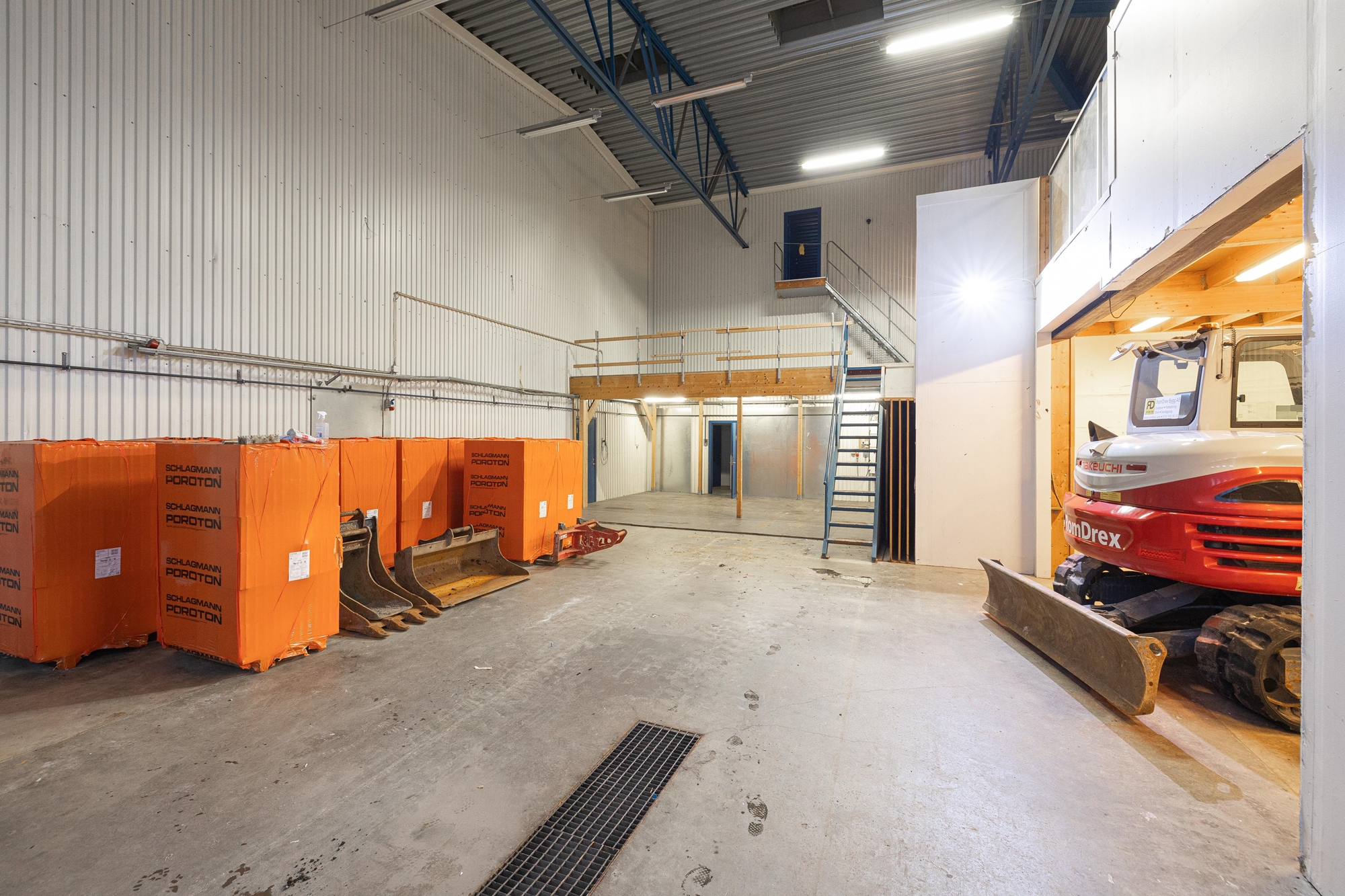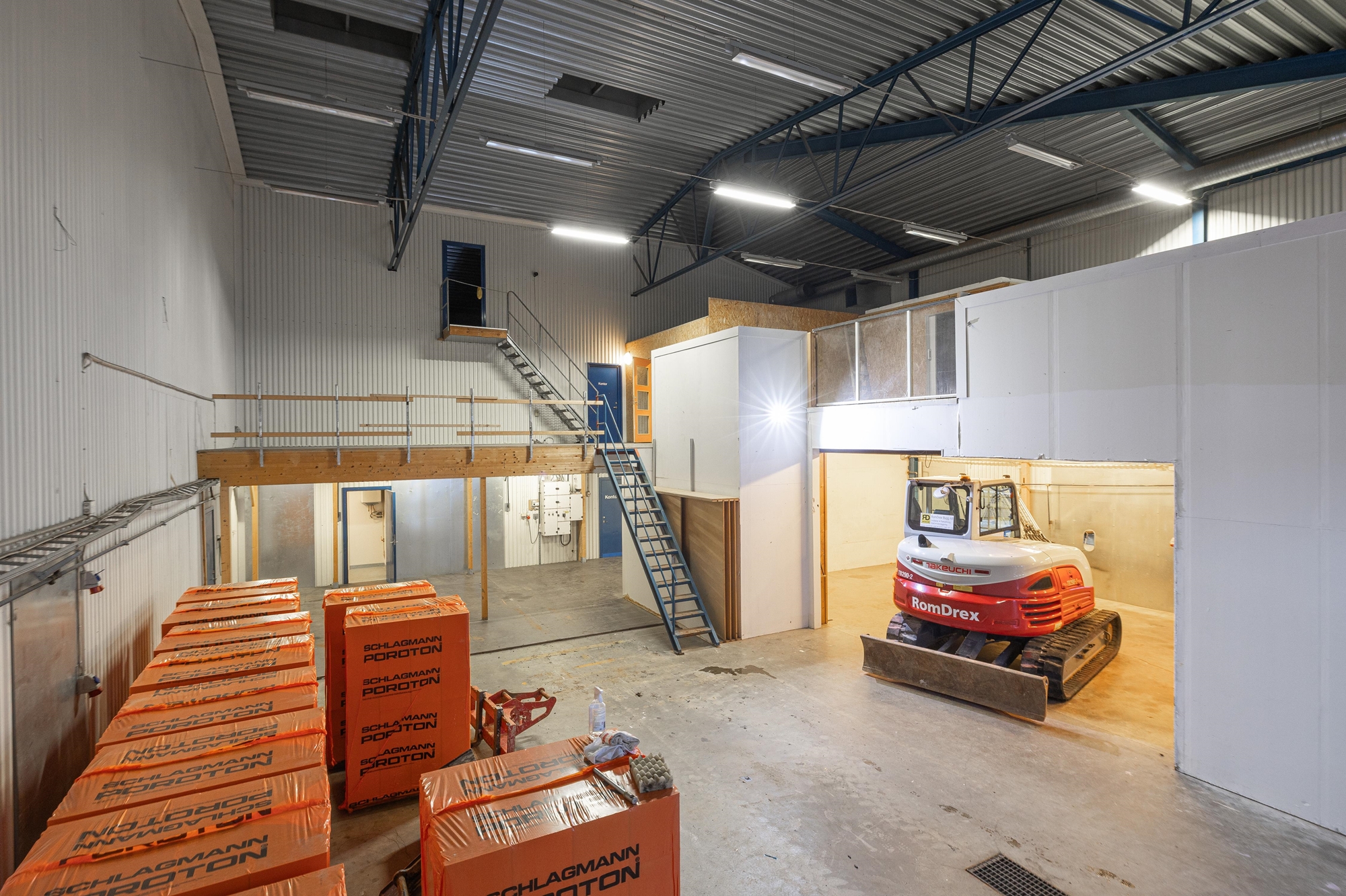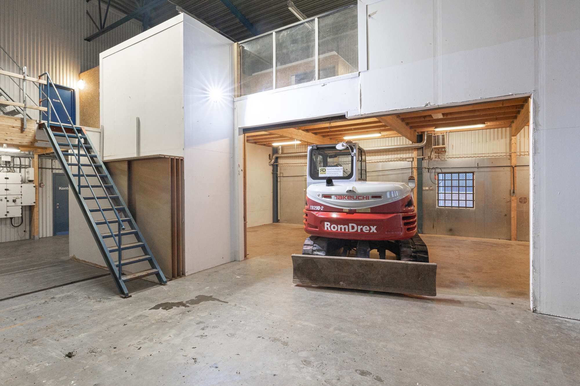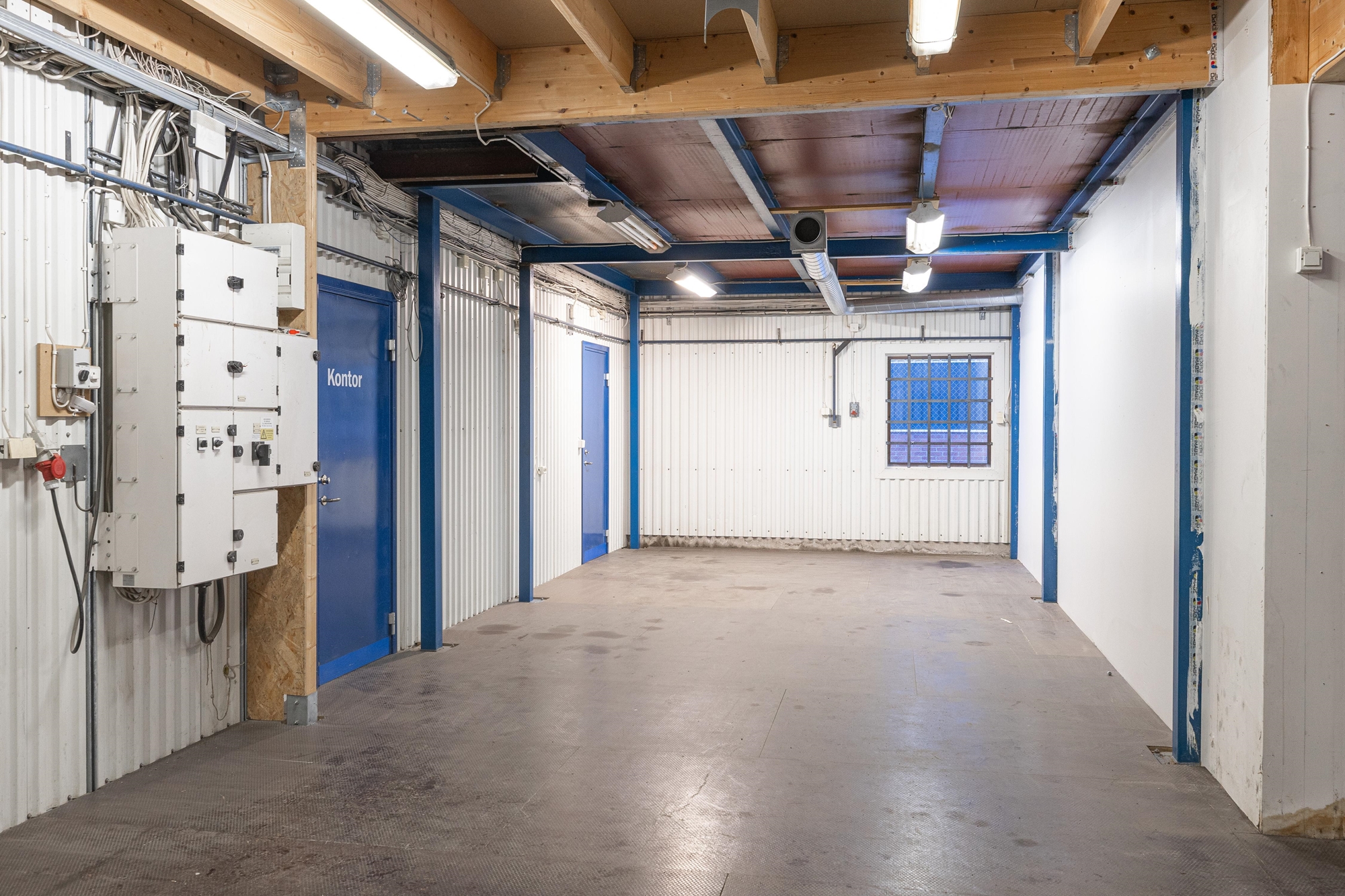 Rymligt kontor i blandade strolekar på rum. Kontorsdelen är utrustad med pentry, WC, dusch, omklädningsrum och övriga personalutrymmen.
