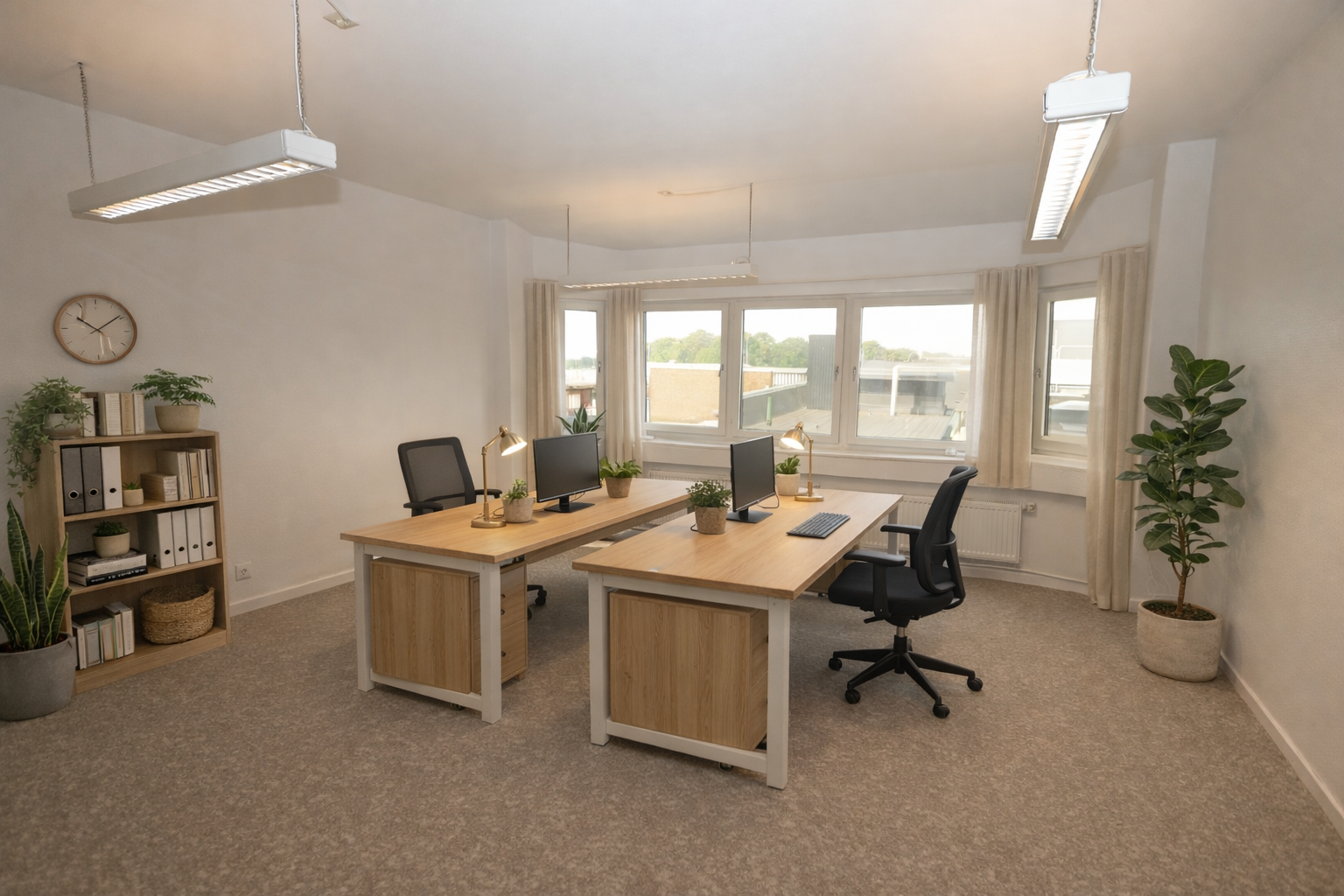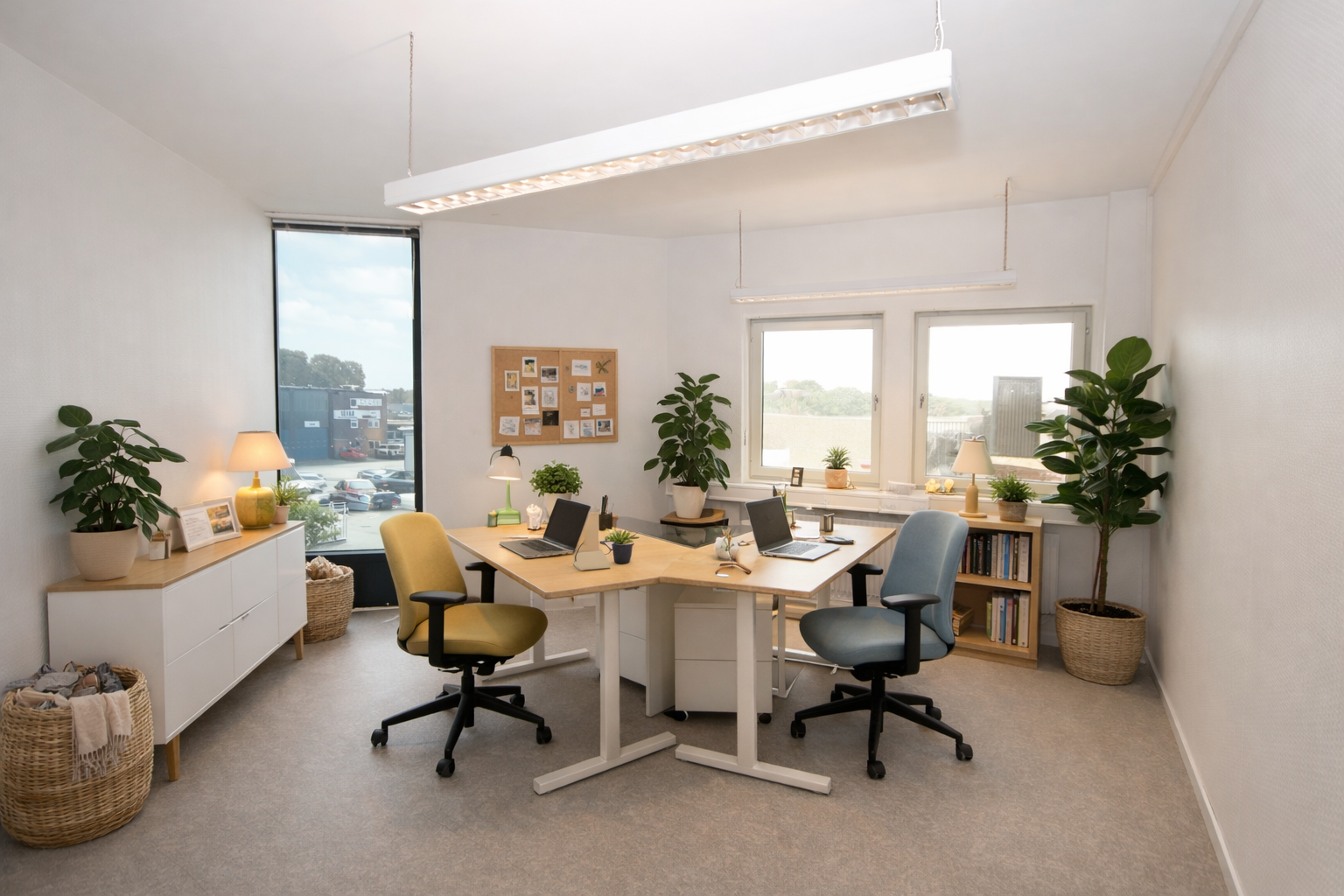 Gott om fönster bidrar till ljusa kontorsytor. Lokalen har tillgång till fiber och klimatet är trivsamt med kyld tilluft.