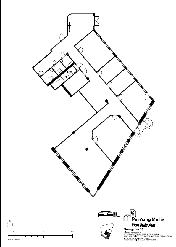 Ytan består av en blandning av kontorslandskap, separata kontorsrum, varav några är extra stora, samt konferensrum. Det finns även förråd, städ, WC samt WC/dusch.