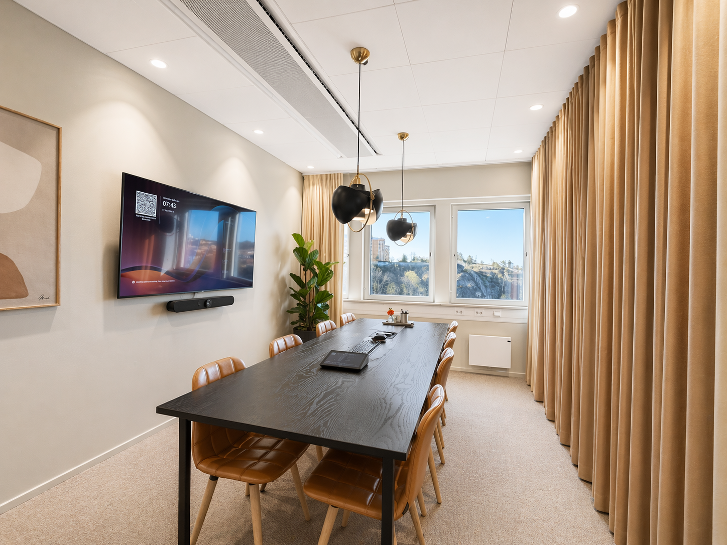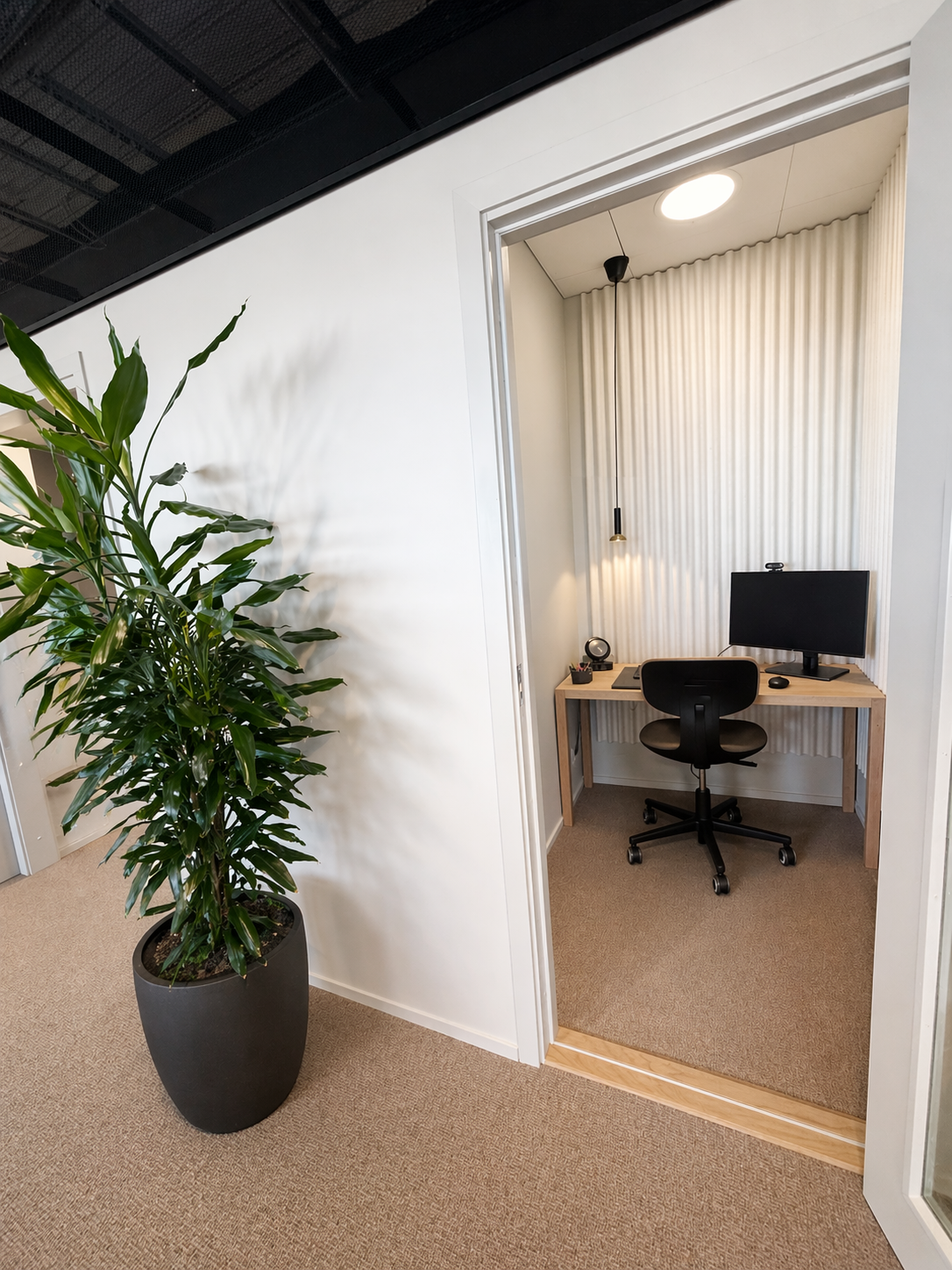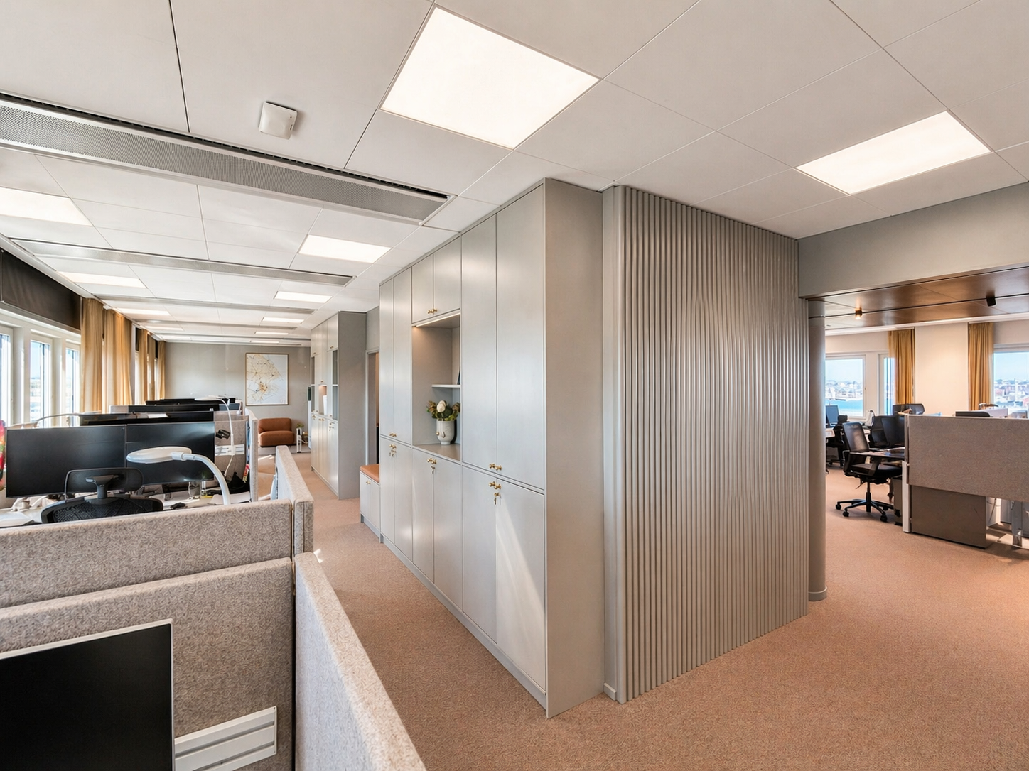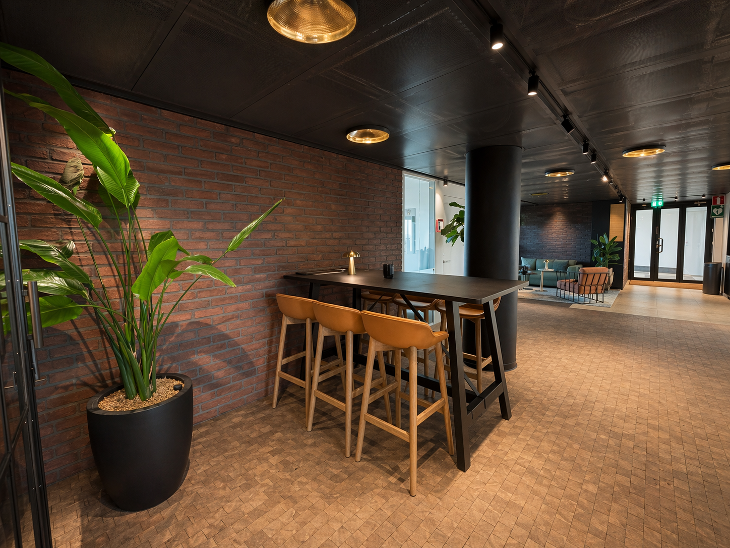 Den genomtänkta planlösningen erbjuder en optimal balans mellan öppna ytor och mer avskilda arbetsrum, vilket gör lokalen lika lämpad för representativa möten som för fokuserat arbete.