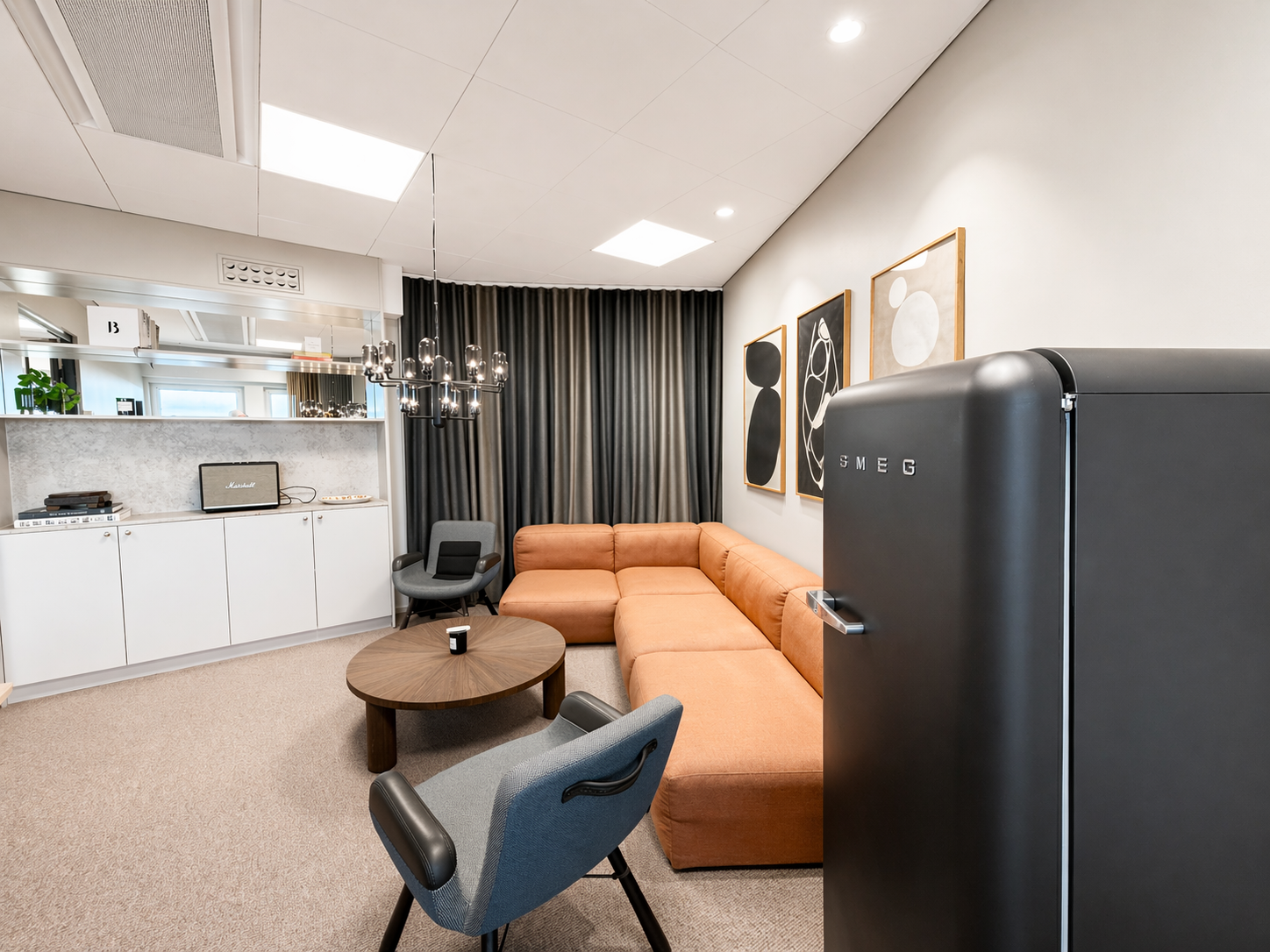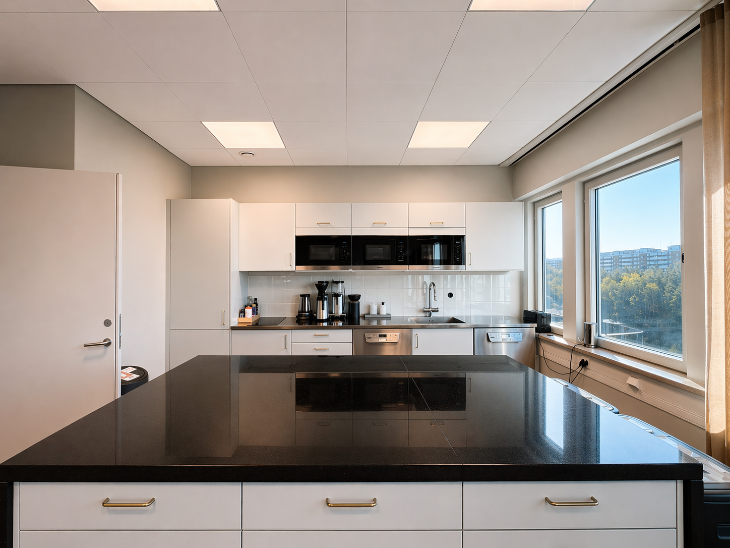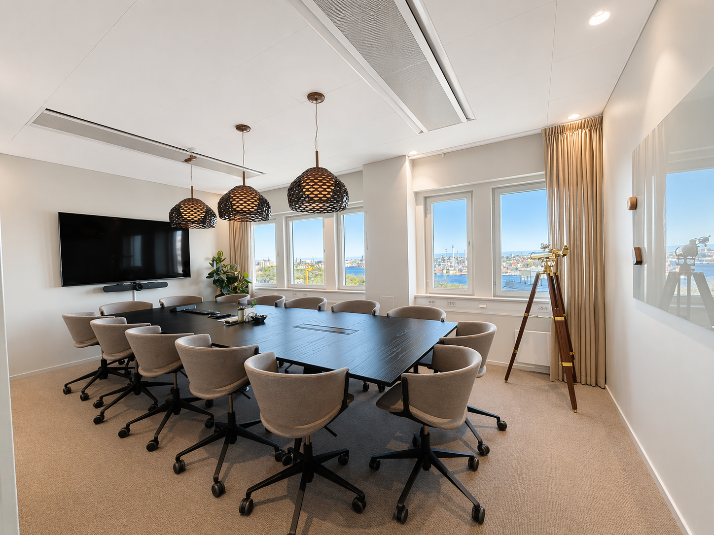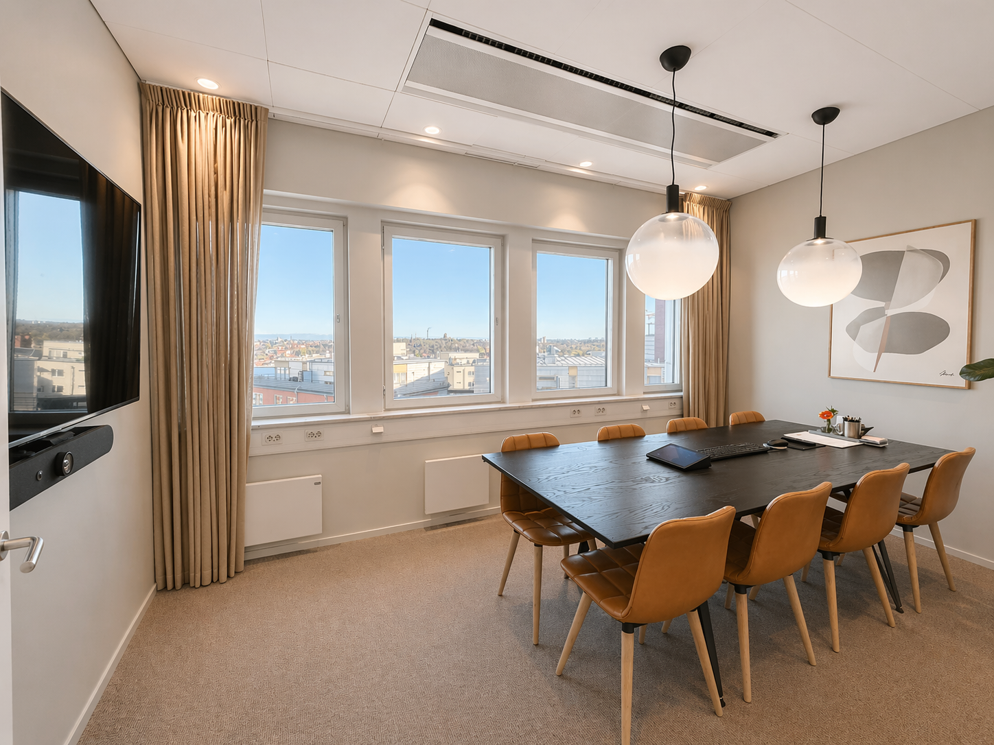 Den genomtänkta planlösningen erbjuder en optimal balans mellan öppna ytor och mer avskilda arbetsrum, vilket gör lokalen lika lämpad för representativa möten som för fokuserat arbete.