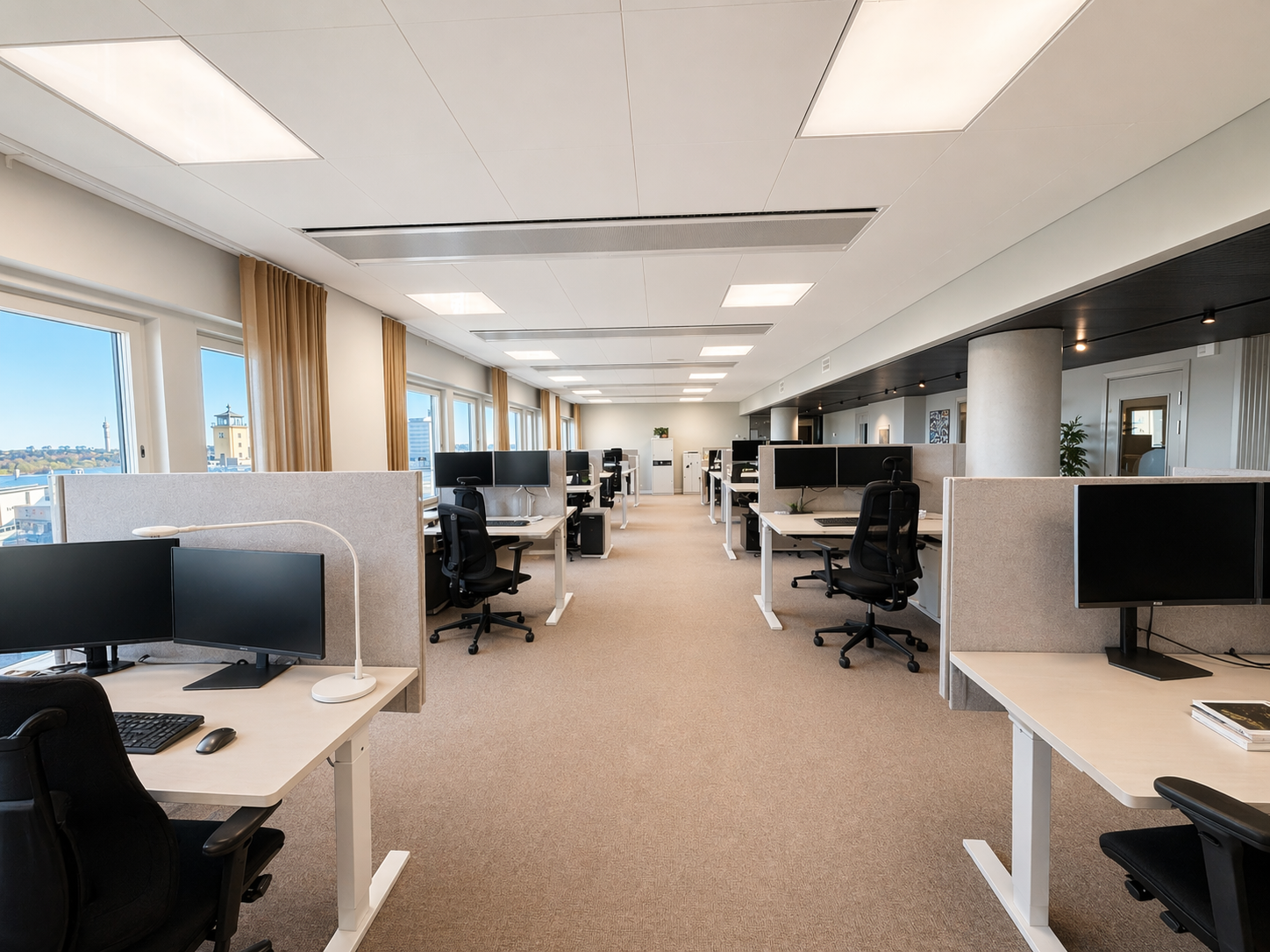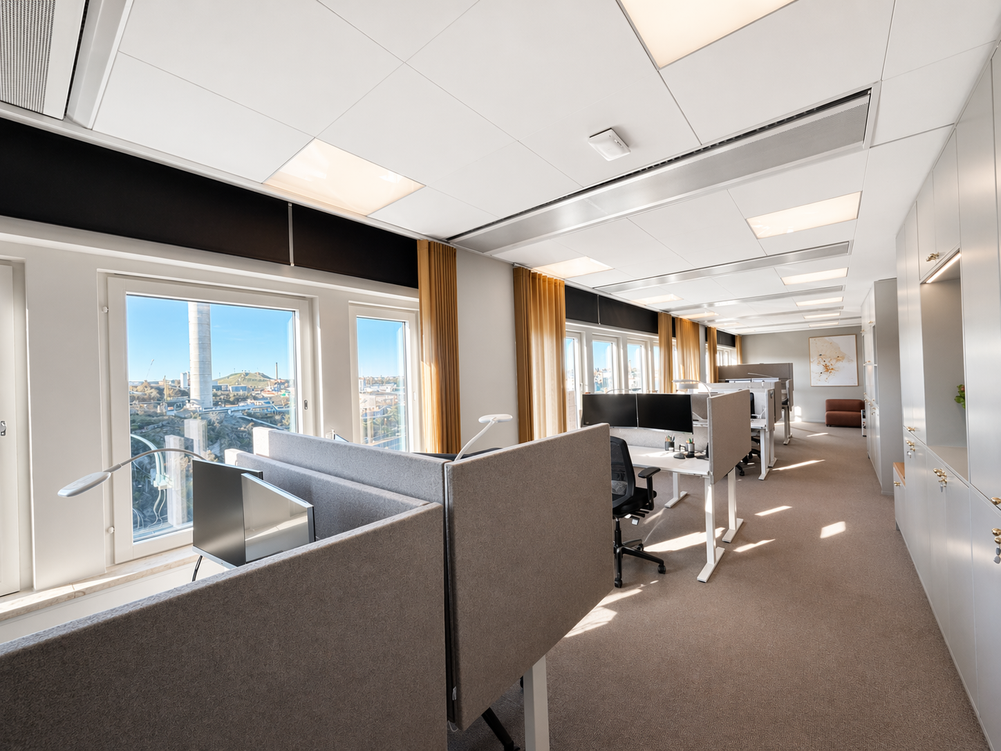 Nu finns möjlighet att hyra ett av fastighetens absolut finaste kontor beläget högt upp på våningsplan 11. Här erbjuds en arbetsmiljö i absolut toppklass med enastående utsikt över omgivningarna i två väderstreck.