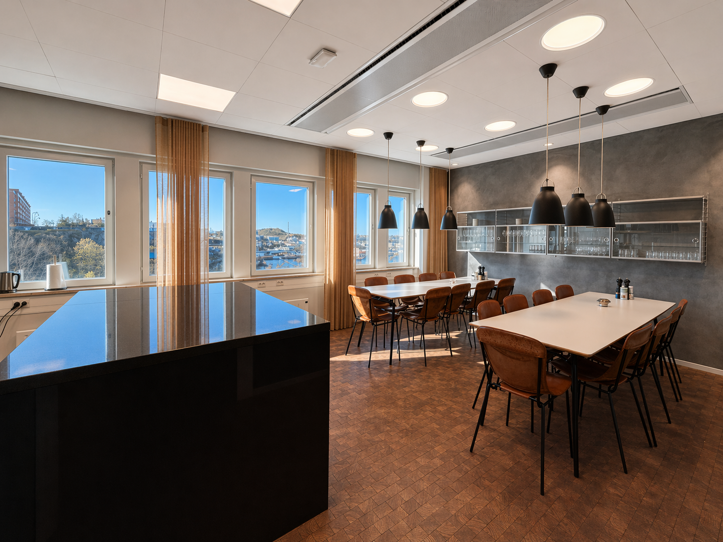 Lokalen om 396 kvm är renoverad med genomgående hög standard och erbjuder en modern, ljus och inspirerande arbetsmiljö. De generösa fönsterpartierna ger ett fantastiskt ljusinsläpp och en vidsträckt utsikt som skapar en unik känsla genom hela kontoret.
