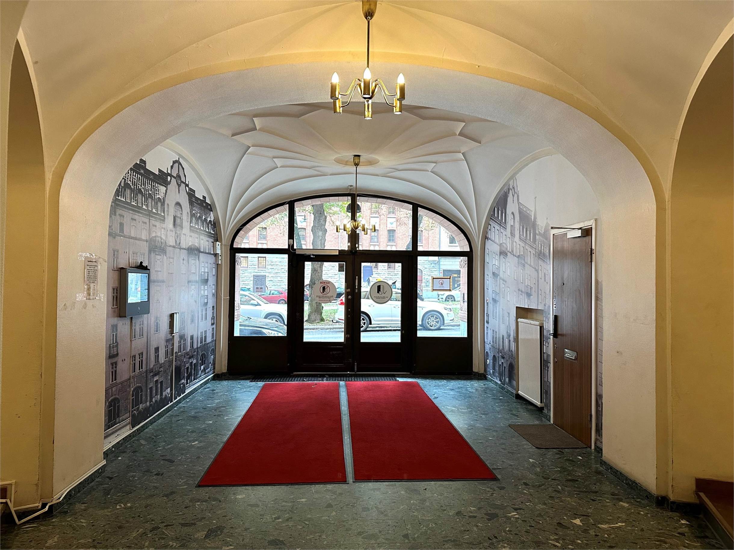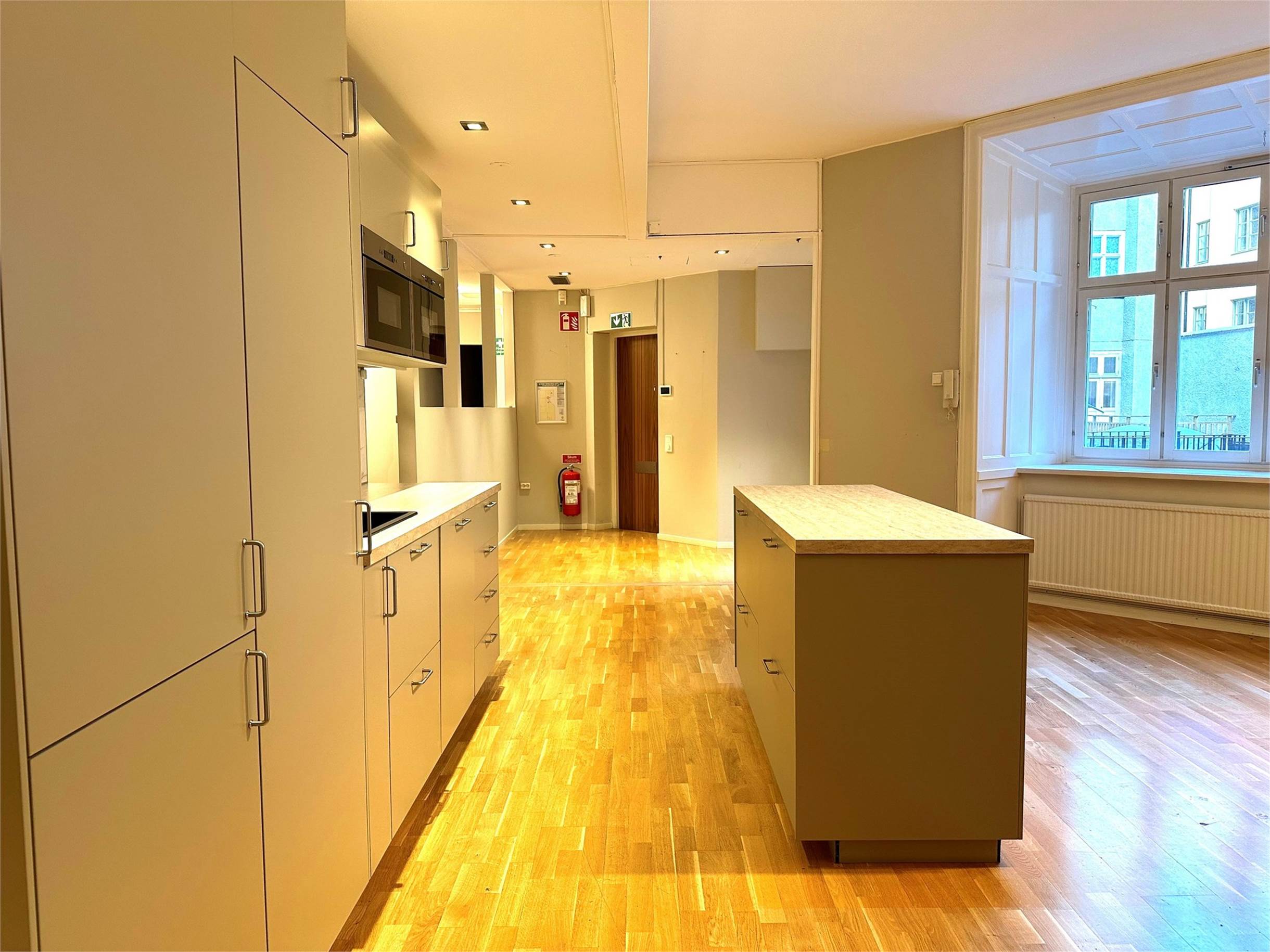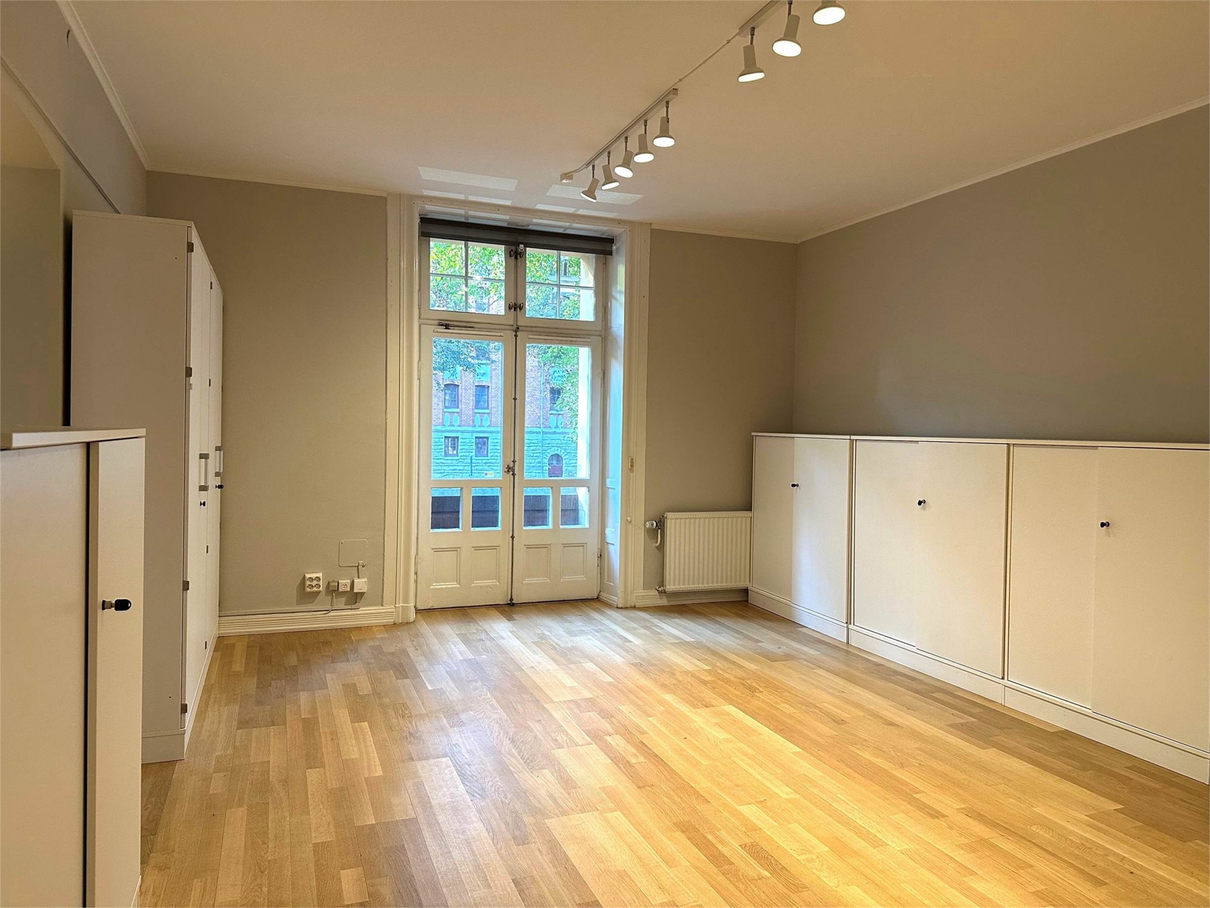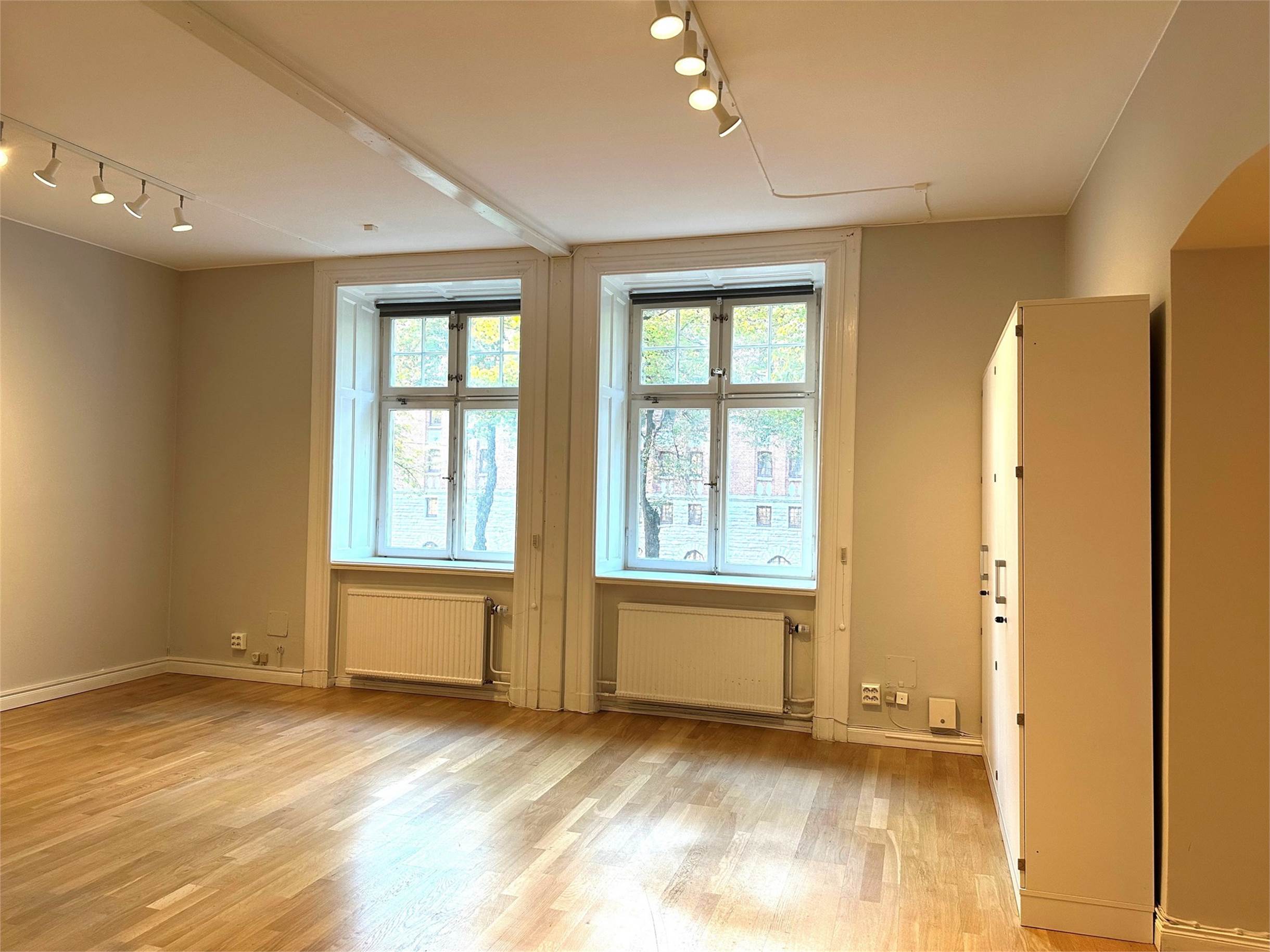 Denna renoverade fina lokal har har renoverats med med väl valda färgval som skapar en trevlig känsla. De stora fönstren ger ett fint ljusinsläpp. Att lokalen dessutom är genomgående ger en tilltalande planlösning. Vid entrén finns den stora sociala ytan med kök och en köksö för arbetsplatsgemenskap. Vid entrén finns en mindre balkong mot innergården och ett av rummen har även en vädringsbalkong.