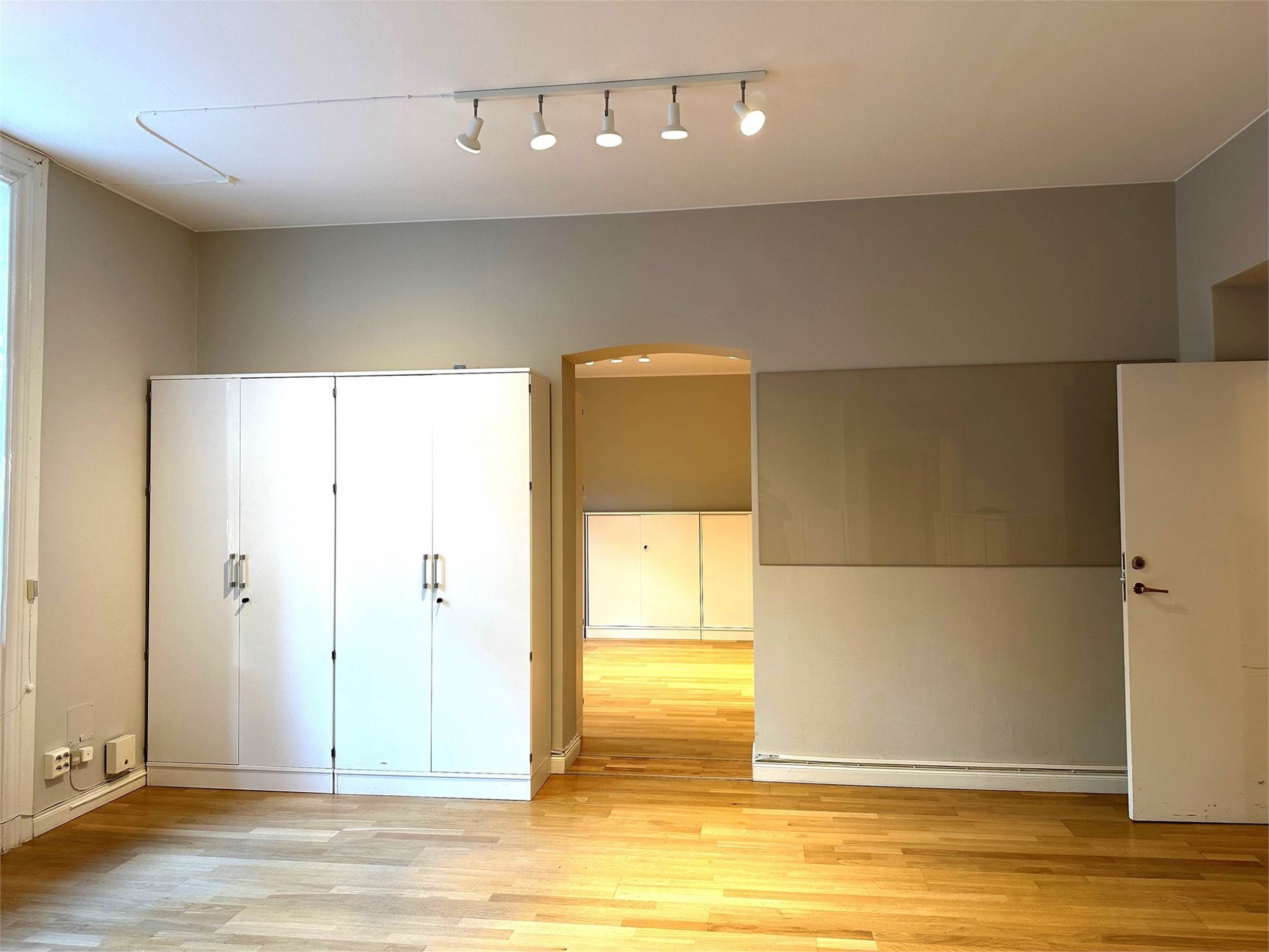 De 5 fina kontorsrummen ger många möjligheter till placering av arbetsplatser och konferensrum. Lokalen har två wc i lokalens bakre del. Till denna lokal finns dessutom möjlighet till 2 förråd/studios om 30 plus 75 kvm! Självklart finns det även cykelparkering i denna fina fastighet.