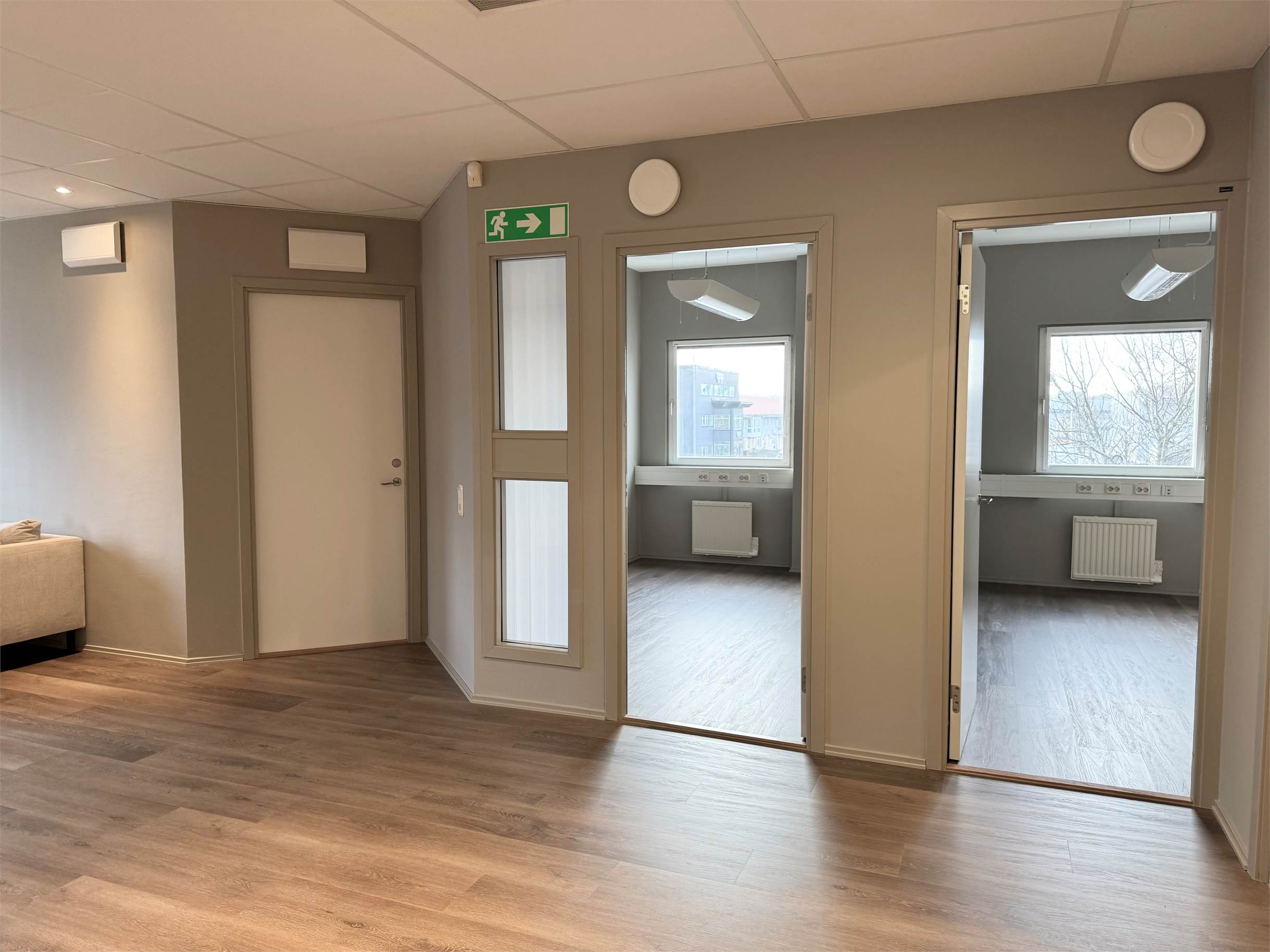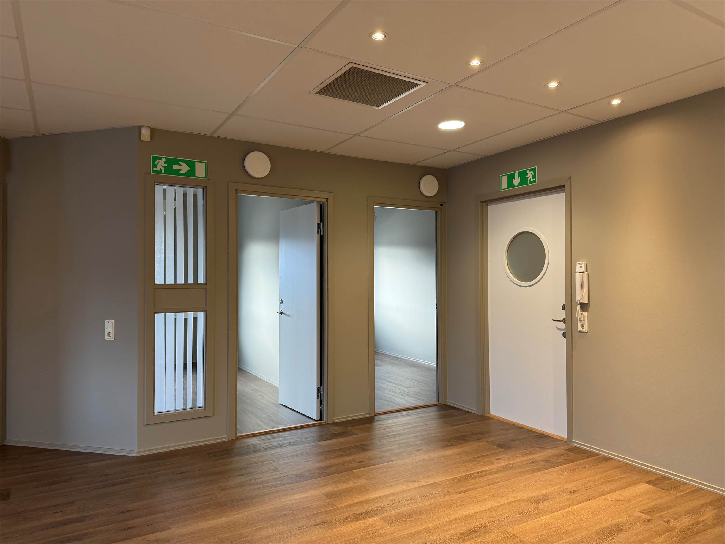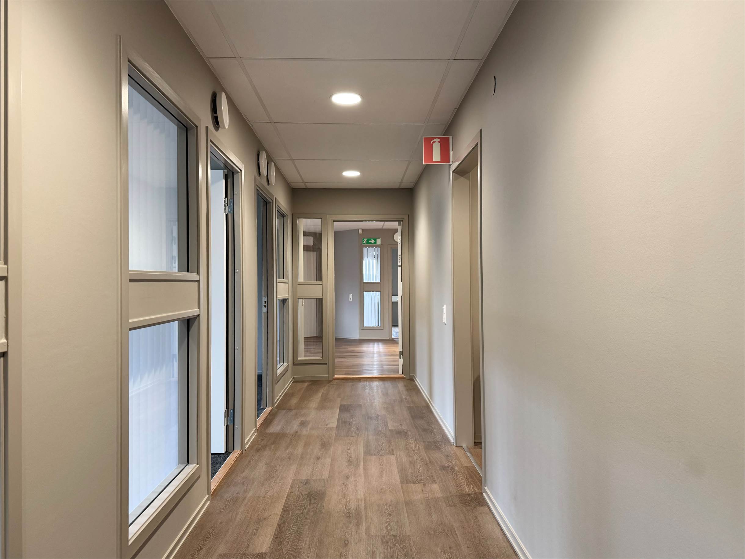 Lokalen består av 8 kontorsrum samt 1 mötesrum. Det största kontoret kan även nyttjas som mötes- eller konferensrum. Planlösningen lämpar sig väl för verksamheter med behov av flera separata rum.