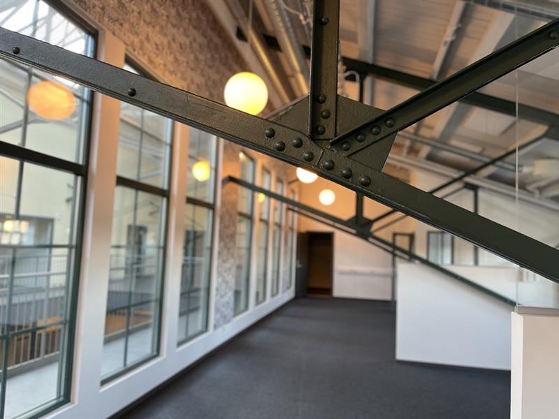 Lokalen erbjuder ett luftigt och ljust öppet kontorslandskap, perfekt för samarbeten och dynamiska arbetsdagar. Utöver det finns ett separat mötesrum, ett fräscht pentry, samt wc allt i en miljö där råa industridetaljer möter stilrena ytskikt. Högt i tak, stora fönster och robusta materialval ger lokalen en själ och karaktär som sällan går att hitta i moderna kontorshus.