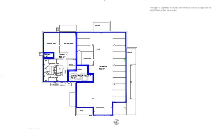 Fint garage med ca: 10 p platser. Egen infart. Utanför finns även ett 50 tal parkeringsplatser.