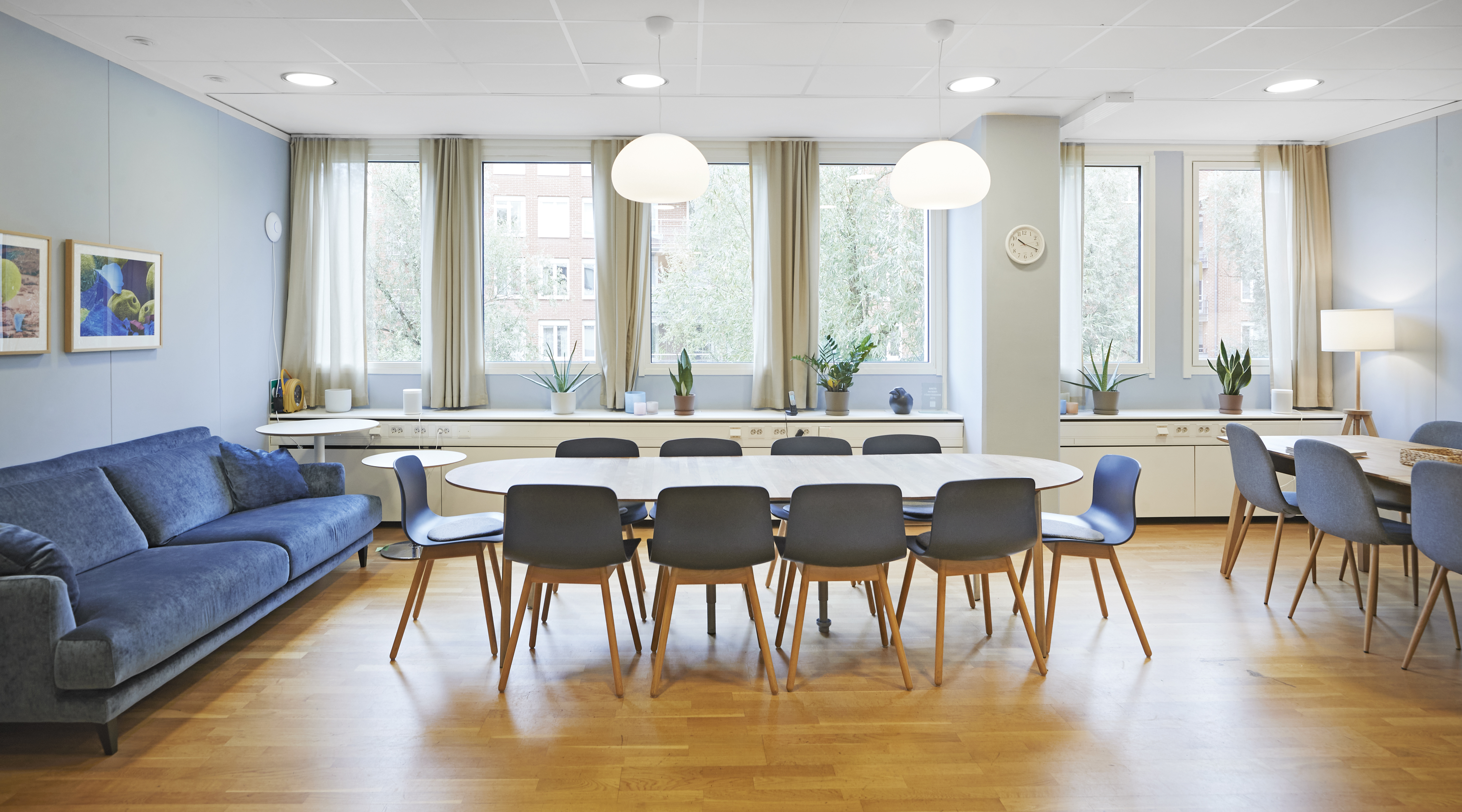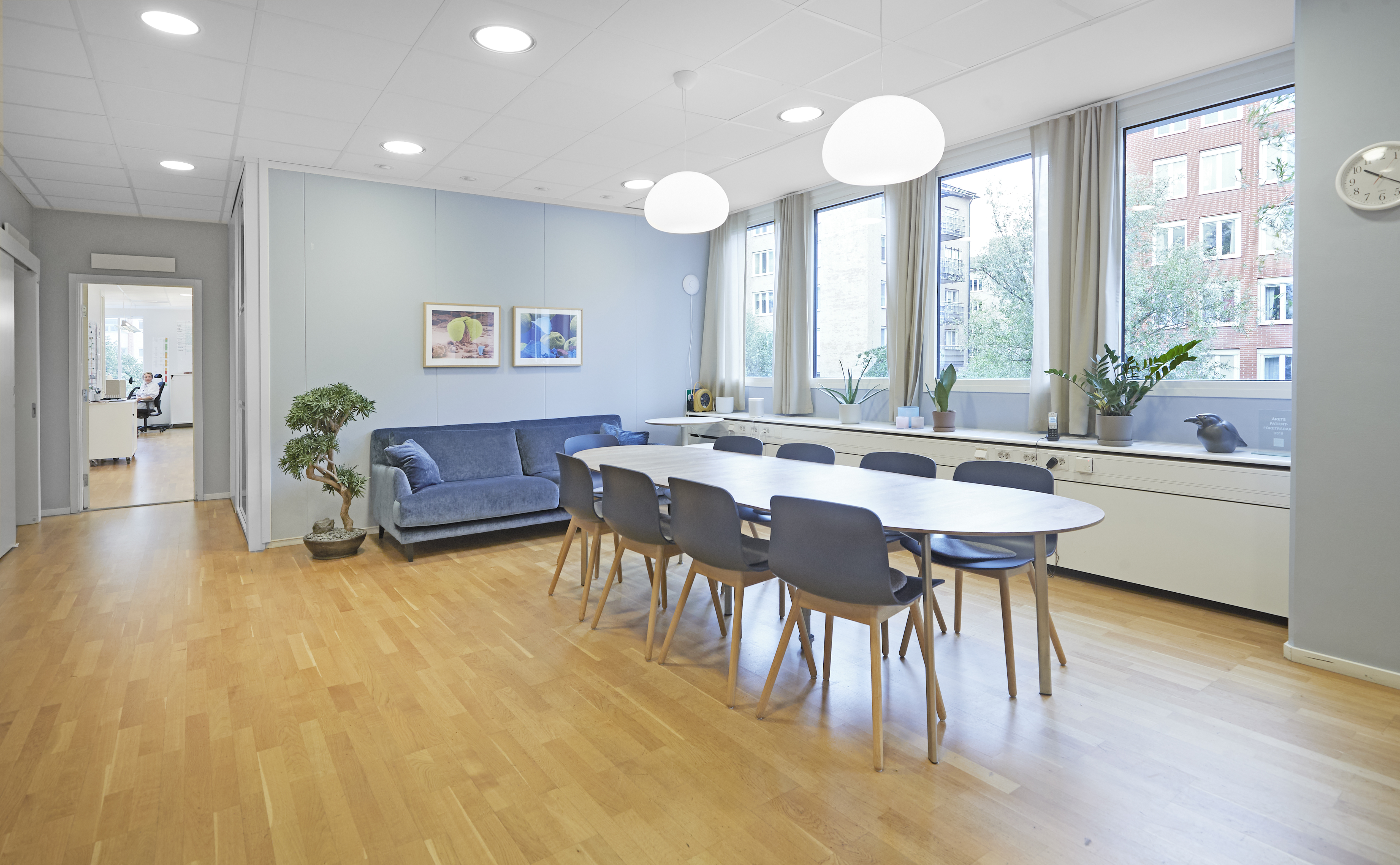 Planlösningen har blandad öppen planlösning och kontorsrum. Två WC, två samtalsrum och fyra mötesrum.
