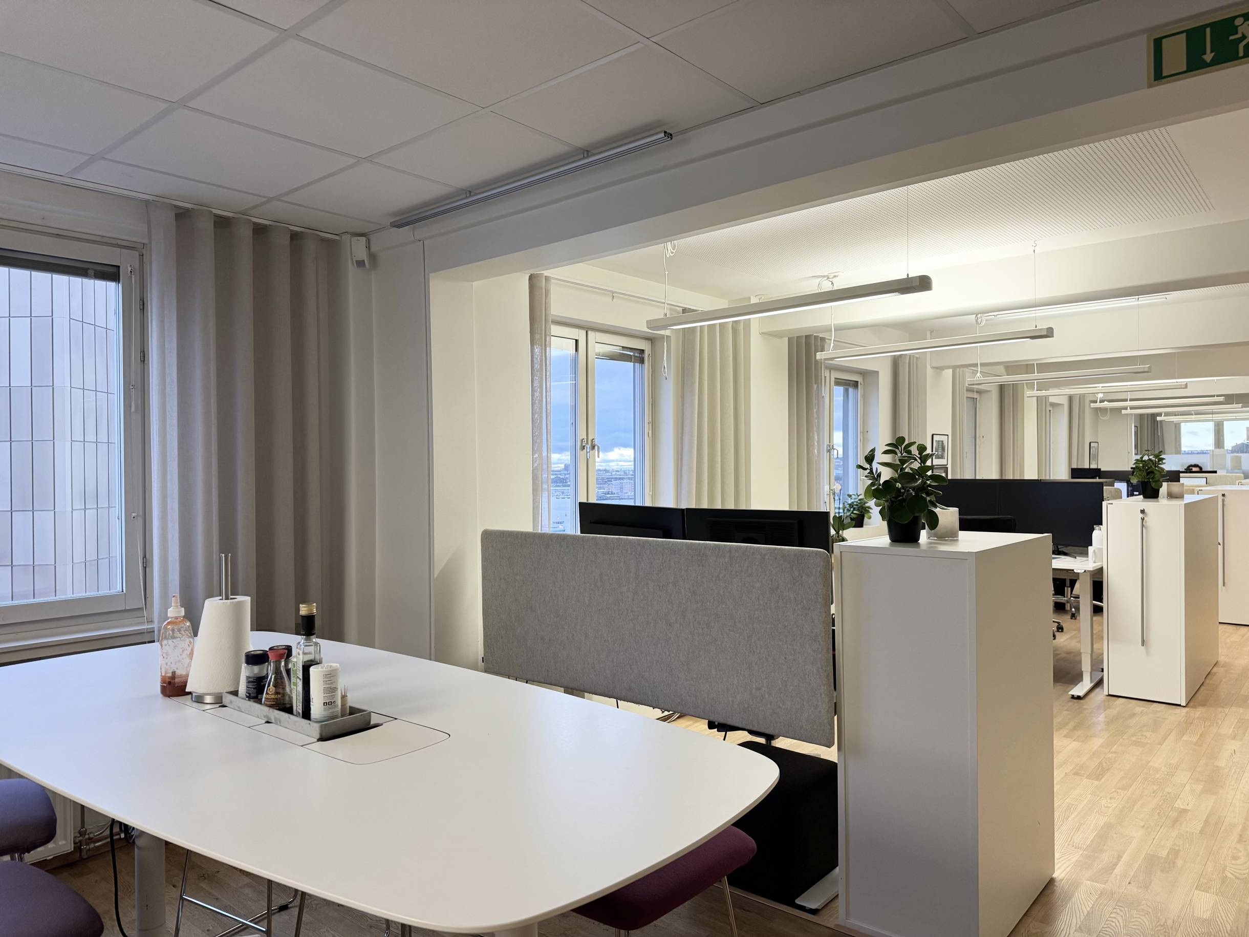 Lokalen präglas av ett ljust och öppet landskap med fantastisk utsikt över staden och vattnet. Här finns även flera separata kontor som skapar goda förutsättningar för både fokuserat arbete och samarbete. Planlösningen kompletteras av flera mötesrum samt ett stort konferensrum som lämpar sig väl för kundmöten, workshops och interna sammankomster.