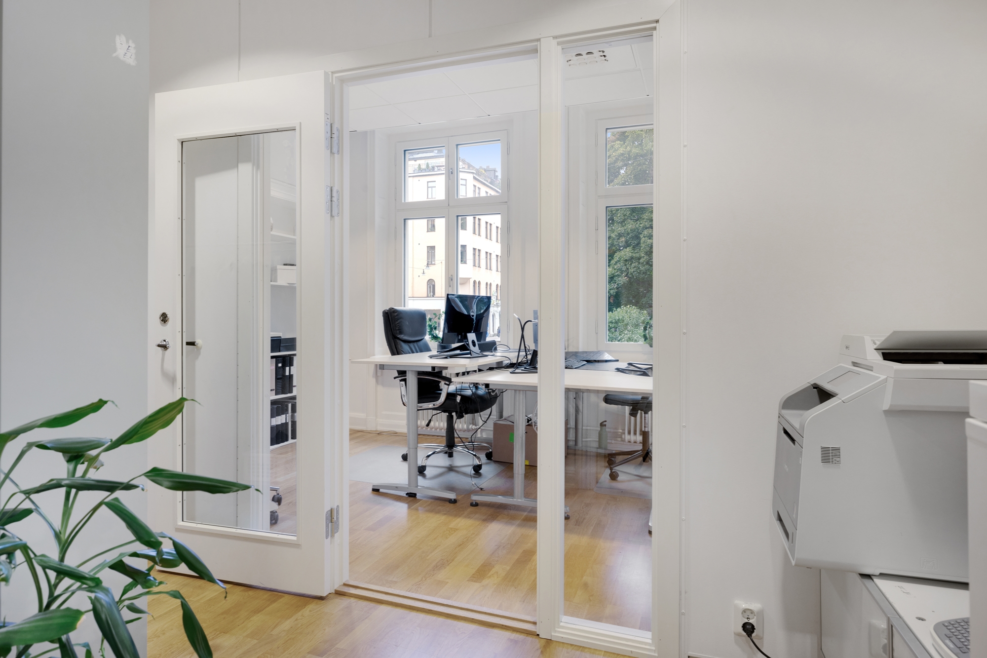 En bra mix av kontors och mötesrum i olika storlekar. Härligt hörnläge mot Upplandsgatan och Tegnérlunden