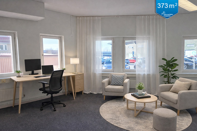 Trevlig kombilokal med kontor/lager på totalt 373 kvm i en representativ byggnad. Lokalen har ingångar i markplan via trapphus samt via ytterdörr i fasad för godshantering in till lageryta.
