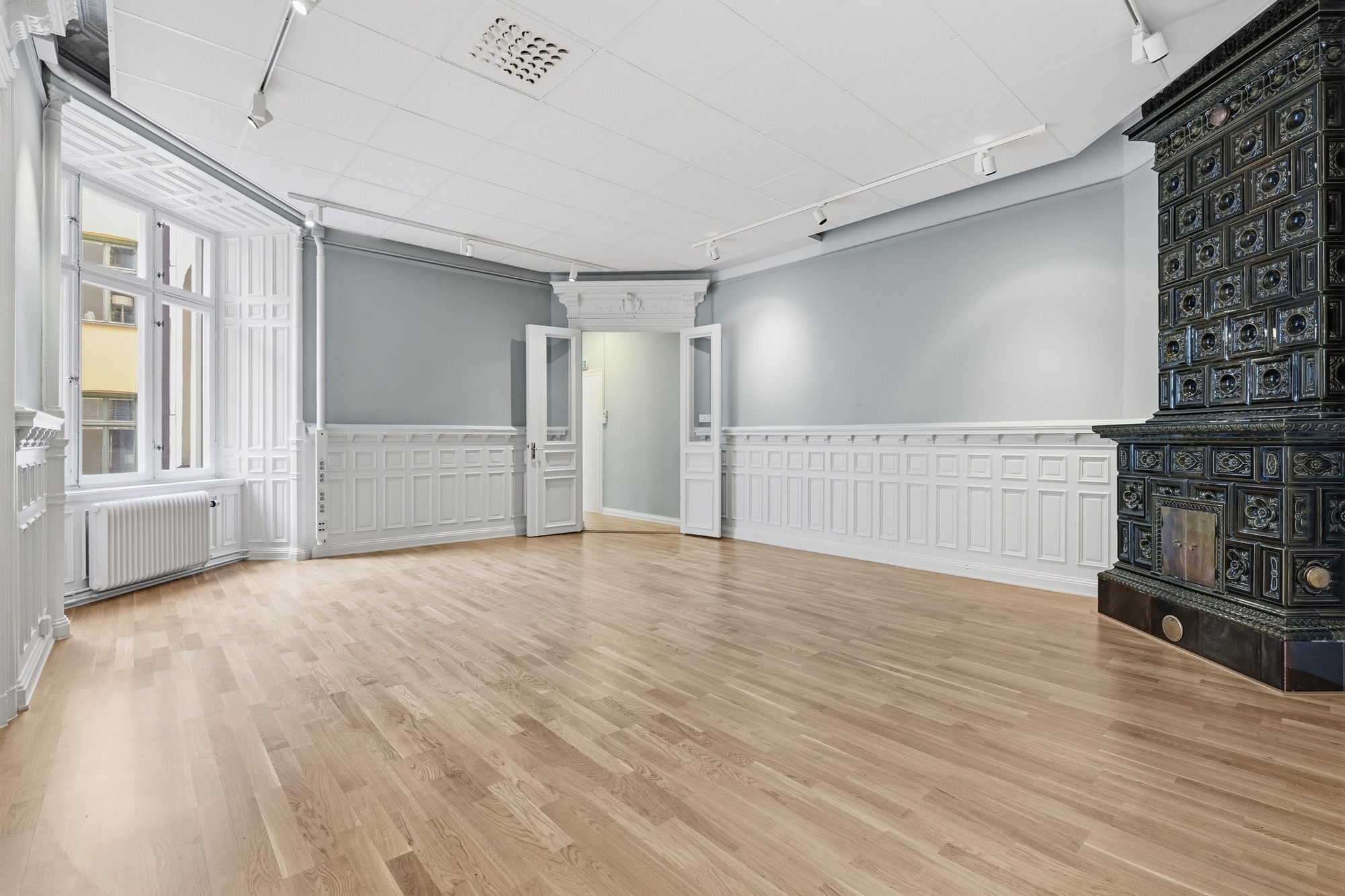Lokalen kombinerar på ett fint sätt den klassiska charmen från en fastighet med anor från sent 1800-tal med moderna arbetsplatsbehov.