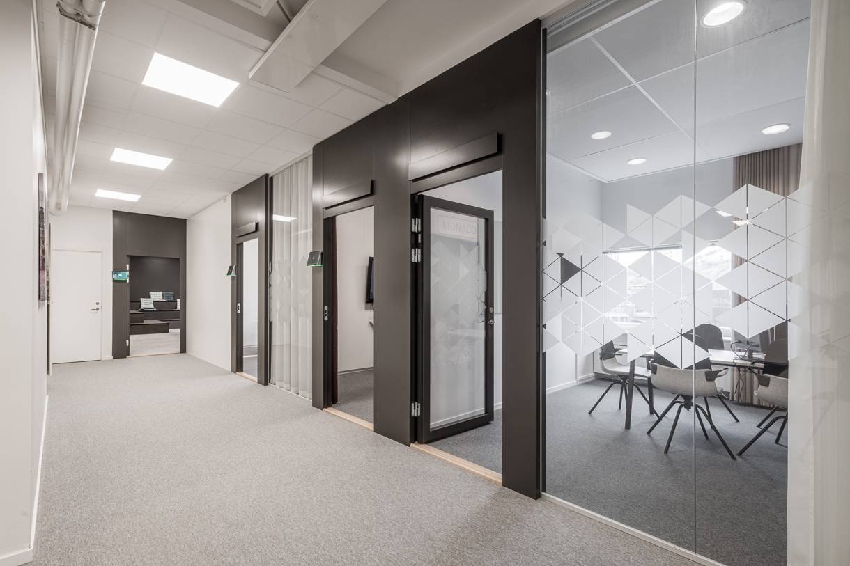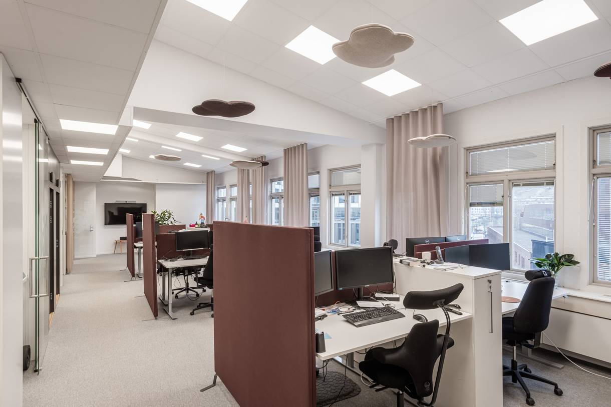 Lokalen har en välplanerad och flexibel planlösning med en kombination av öppna kontorslandskap och enskilda kontorsrum. Flera mötes- och konferensrum i olika storlekar ger goda möjligheter för både interna möten och större presentationer. Det rymliga pentryt med tillhörande sociala ytor fungerar som en naturlig samlingsplats för medarbetare.