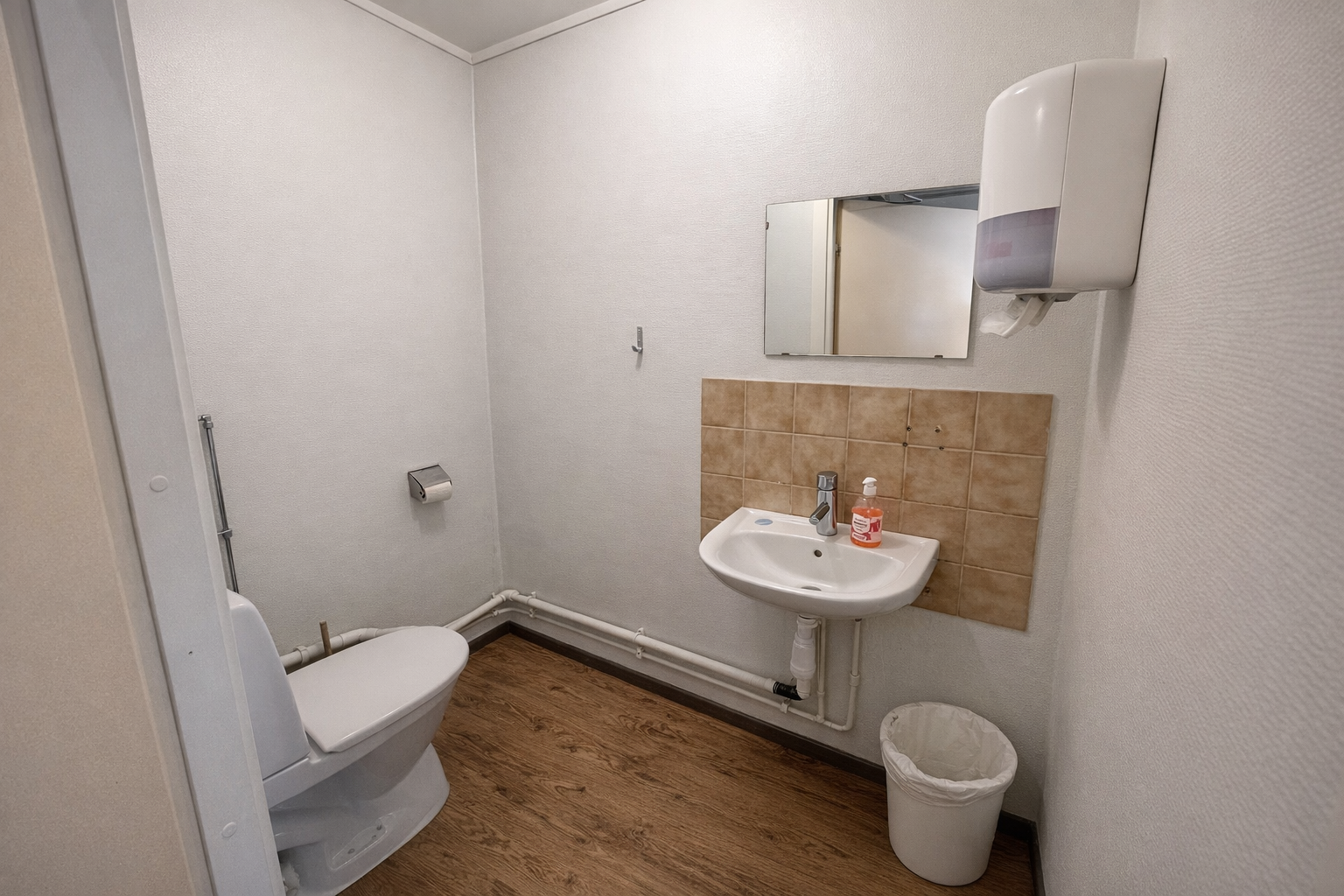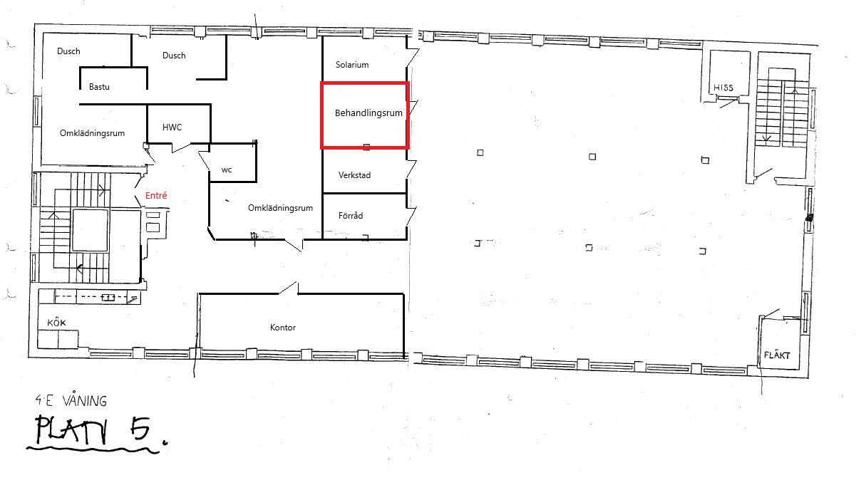 Tillgång till omklädningsrum, WC och lunchrum ingår, vilket ger en enkel och kostnadseffektiv lösning för mindre klinikverksamhet.