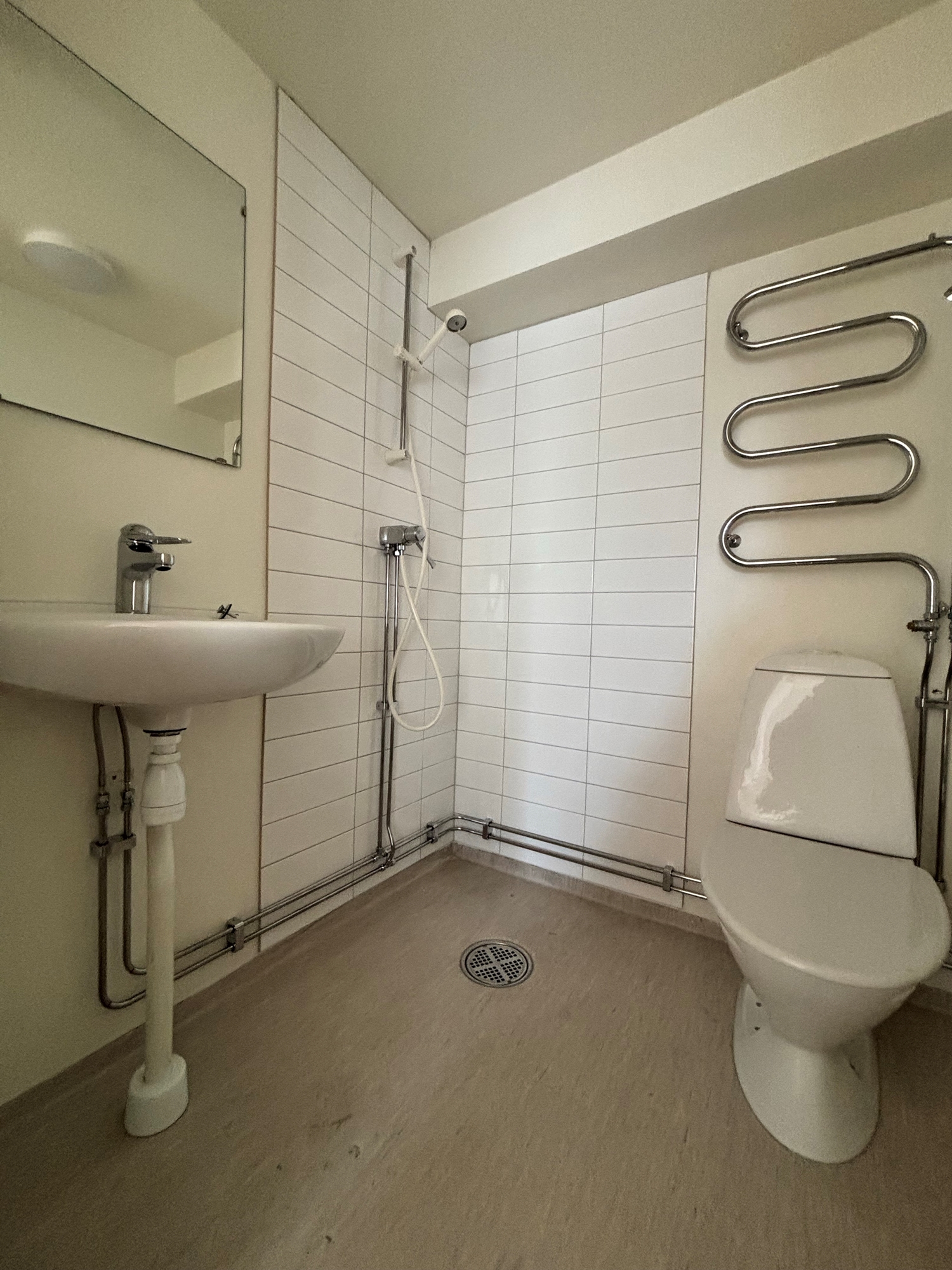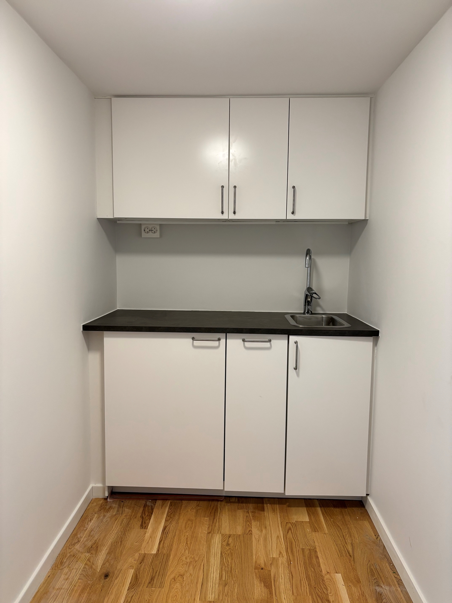 Effektiv planlösning med pentry, WC och en öppen yta som kan anpassas efter behov.