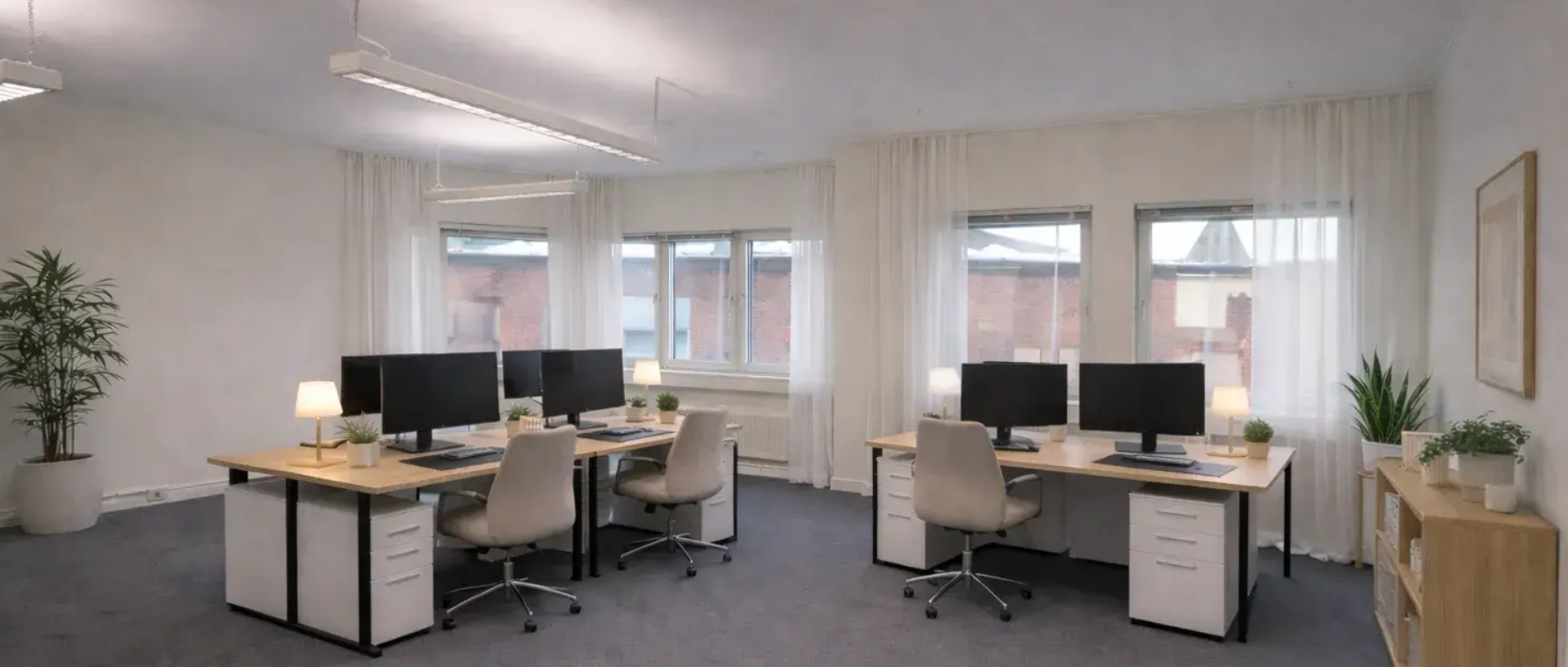 Komplett och effektivt planerad kontorslokal om 84 kvm belägen en trappa upp i byggnaden, med hiss för god tillgänglighet. Lokalen har egen ingång och erbjuder en funktionell planlösning med två väl tilltagna kontorsrum som ger flexibilitet i antal arbetsplatser.