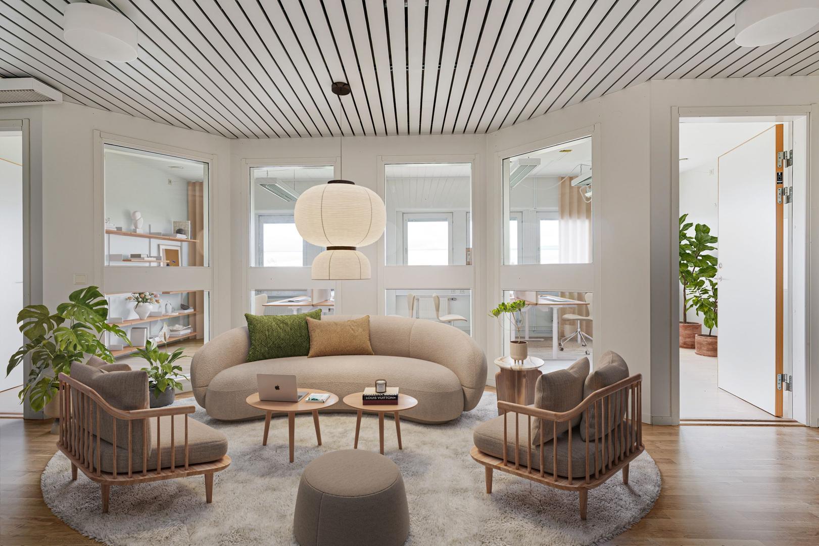 Ljust kontor med utsikt mot gården
