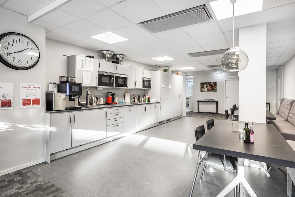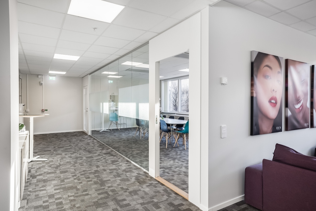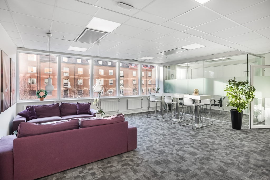 Trivsam atmosfär skapas med fina textilgolv och moderna akustikplattor i tak som ger en dämpande effekt. WC grupper med dusch, för den som startat dagen med en cykeltur till kontoret.