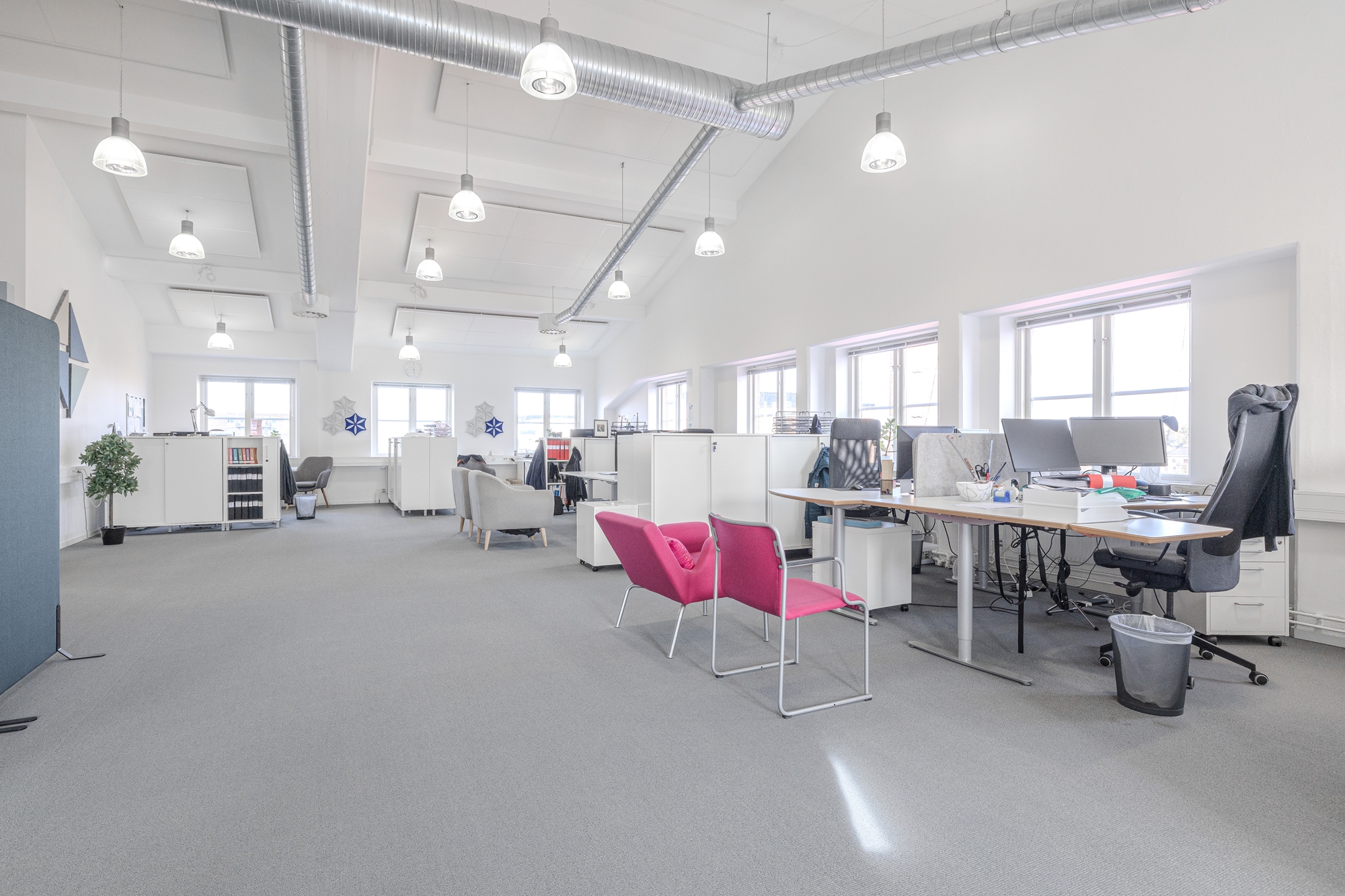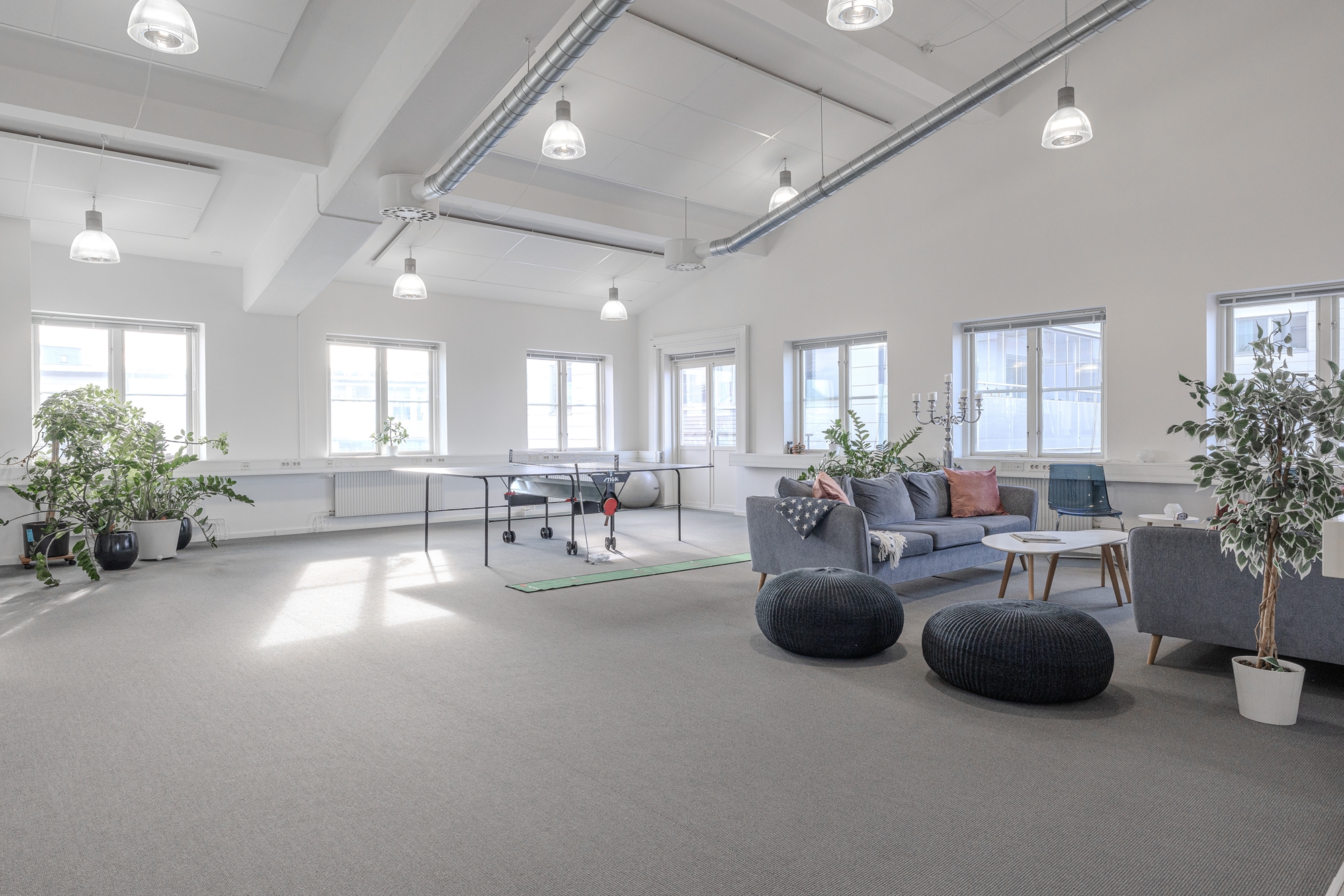 Lokalen har ljusa fina ytskikt och är belägen högst upp i fastigheten vilket ger ett fint dagsljusinsläpp från fyra väderstreck.