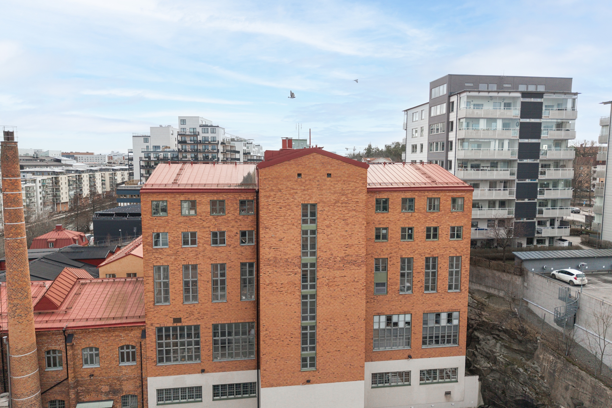 Lokal om 480 kvm på femte våningen med härlig karaktär; fabriksbyggnad från 1914. Bra läge nära Sundbyberg.