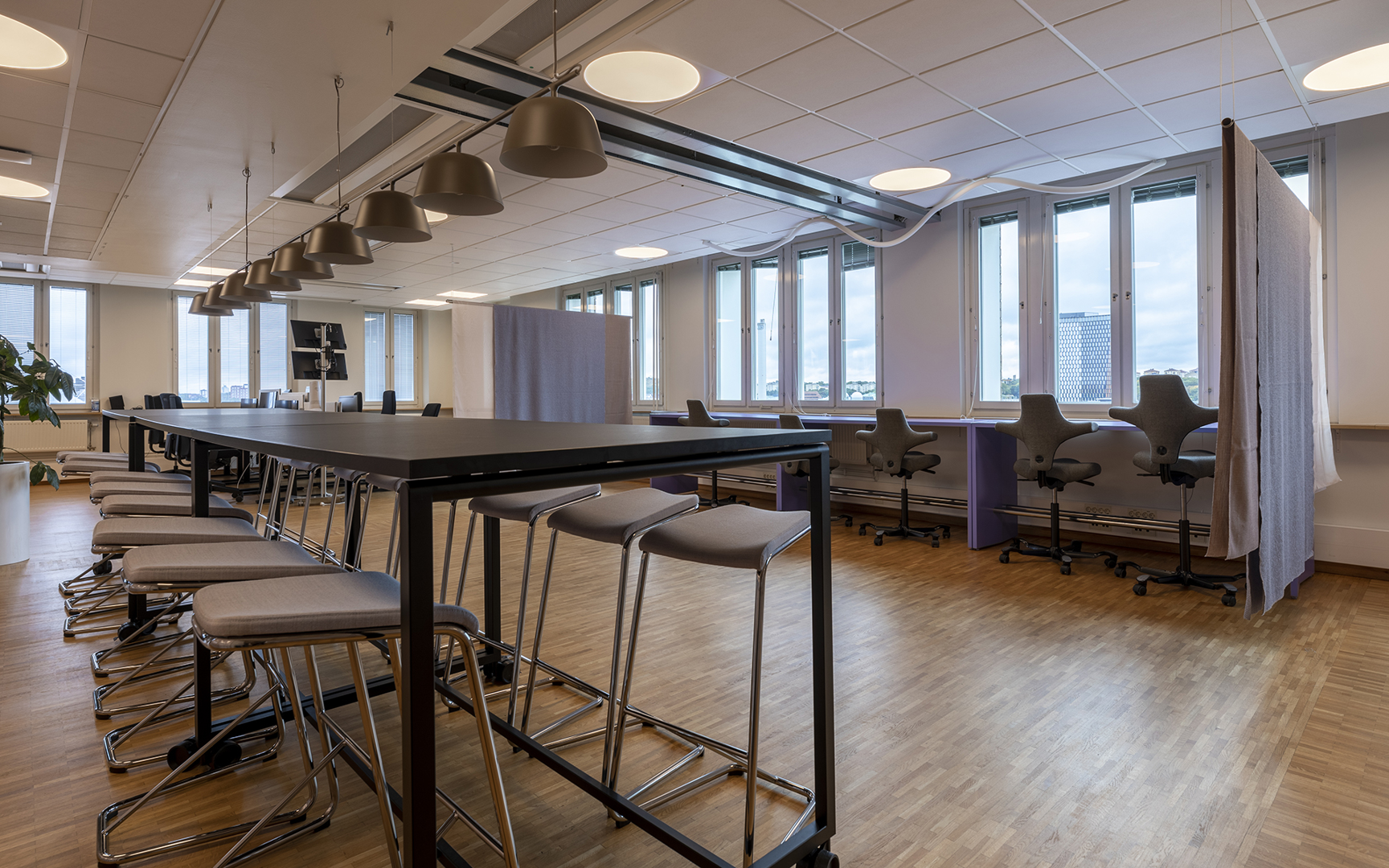 Lokalen om ca 1 217 kvm är idag disponerad som ett öppet landskap, men kan enkelt anpassas efter nästa hyresgästs behov och önskemål. Här finns möjligheten att skapa en inspirerande arbetsplats med både samarbetsytor och tysta zoner för fokus.