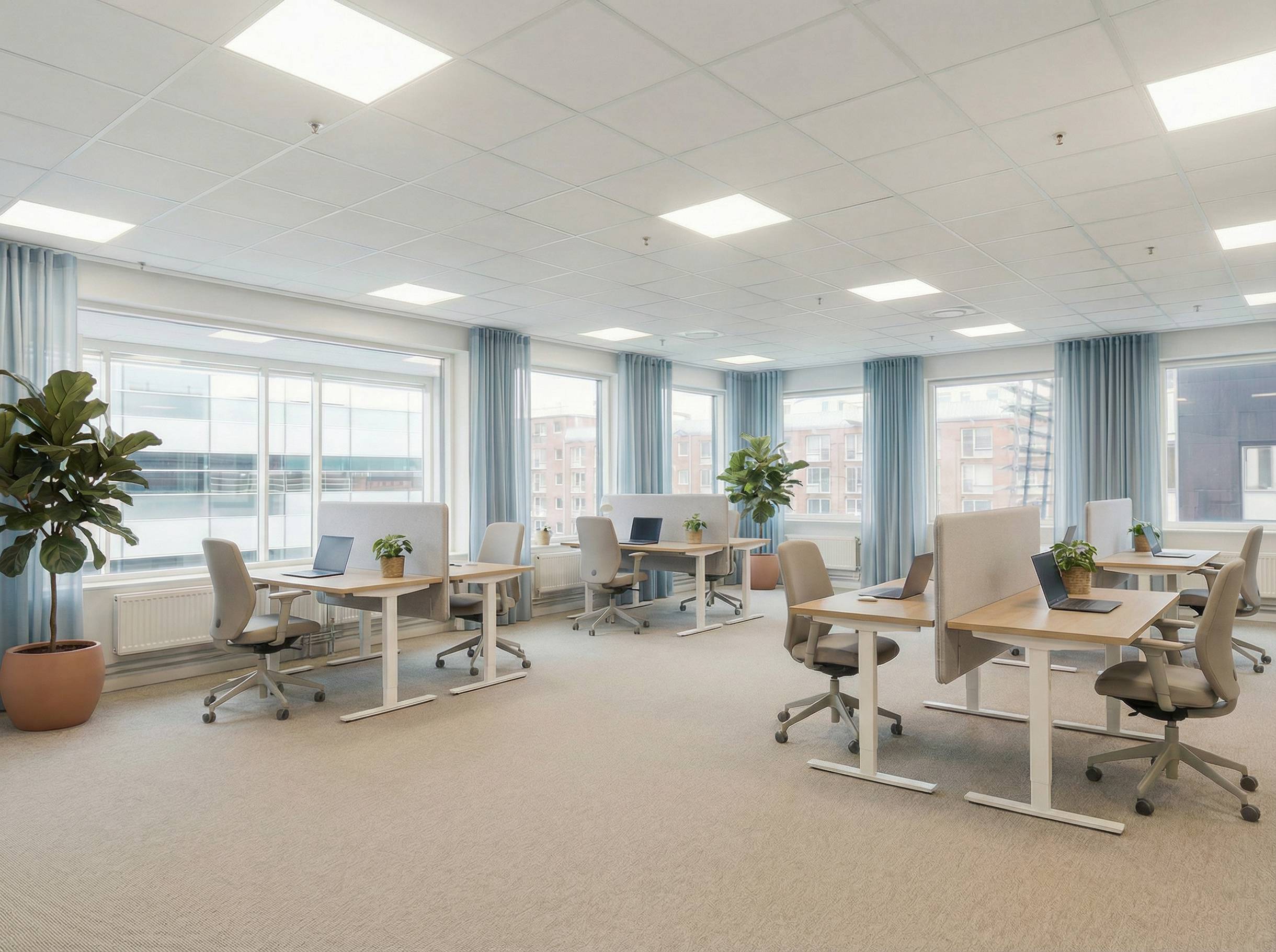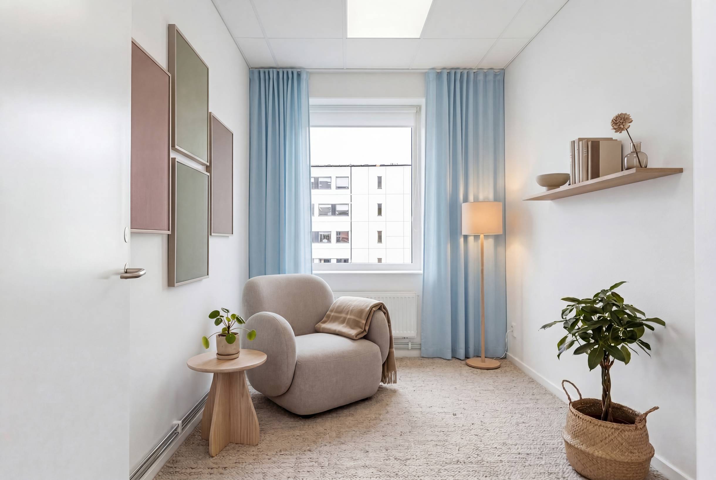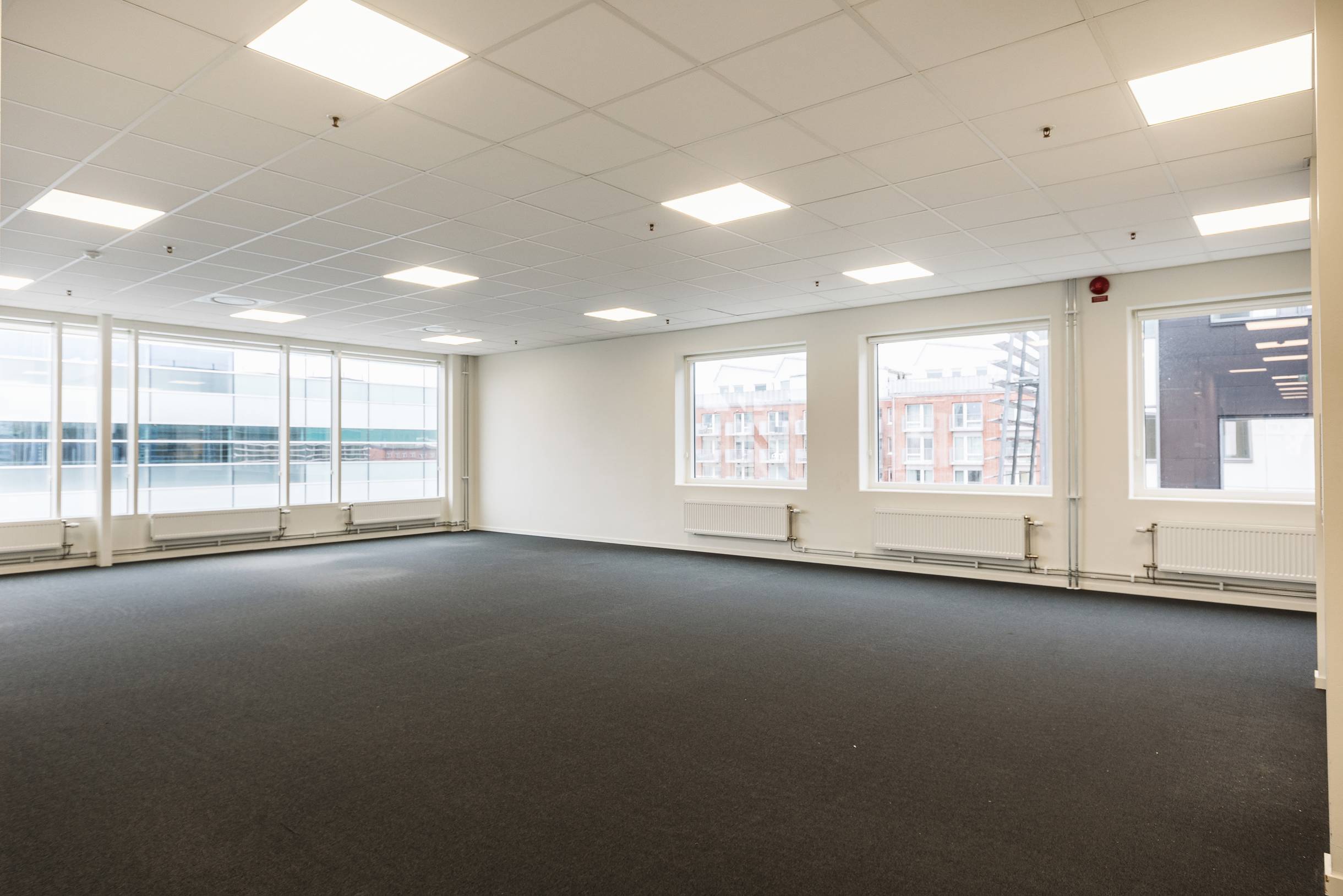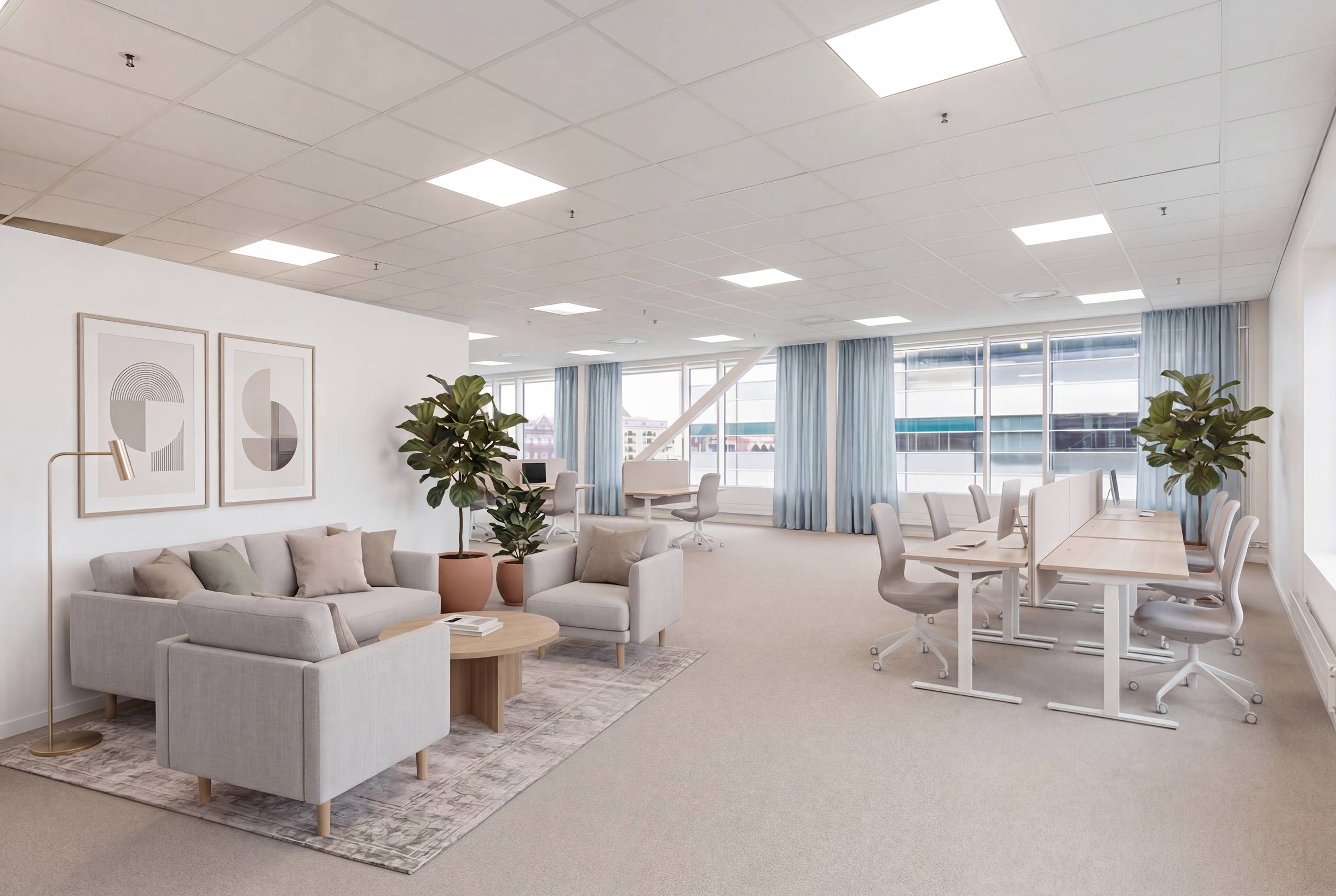 Ljust och yteffektivt kontor med stora fönster – anpassa efter era behov i Västra Hamnen