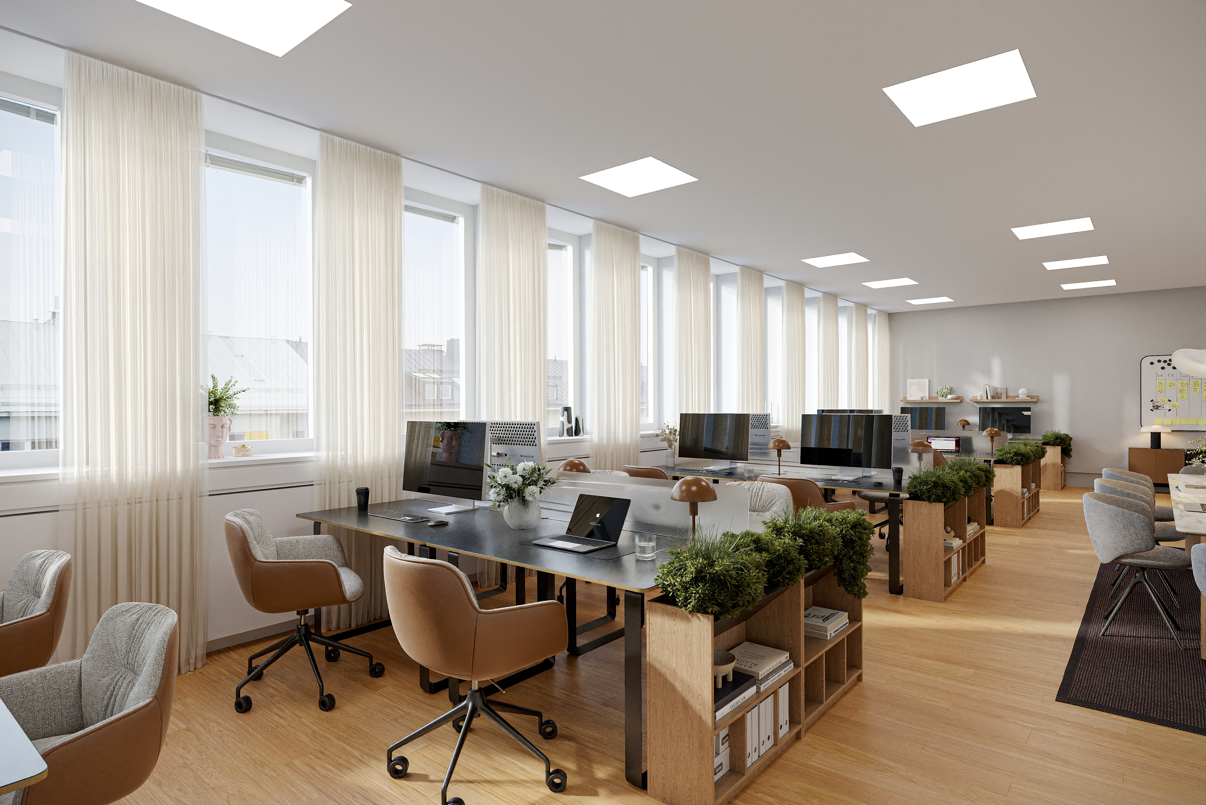 Fin lokal i lugnt läge mot bakgård och tillgång till terrass. Öppen planlösning.
