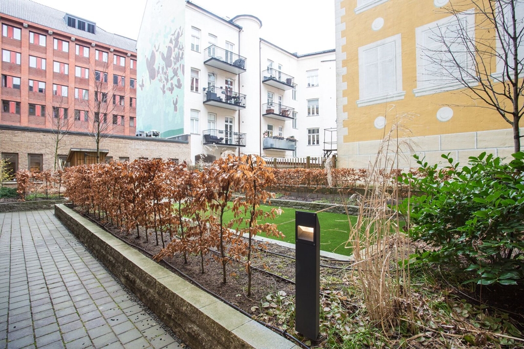 Här finns stadens puls runt hörnet. Bland annat finns Gustav Adolfs torg bara ett par minuter bort. Ta del av både stadens utbud av restauranger, caféer och butiker på stadens torg och längs med shoppingstråken. Eller varför inte njuta av husets mysiga och grönskande innergård?