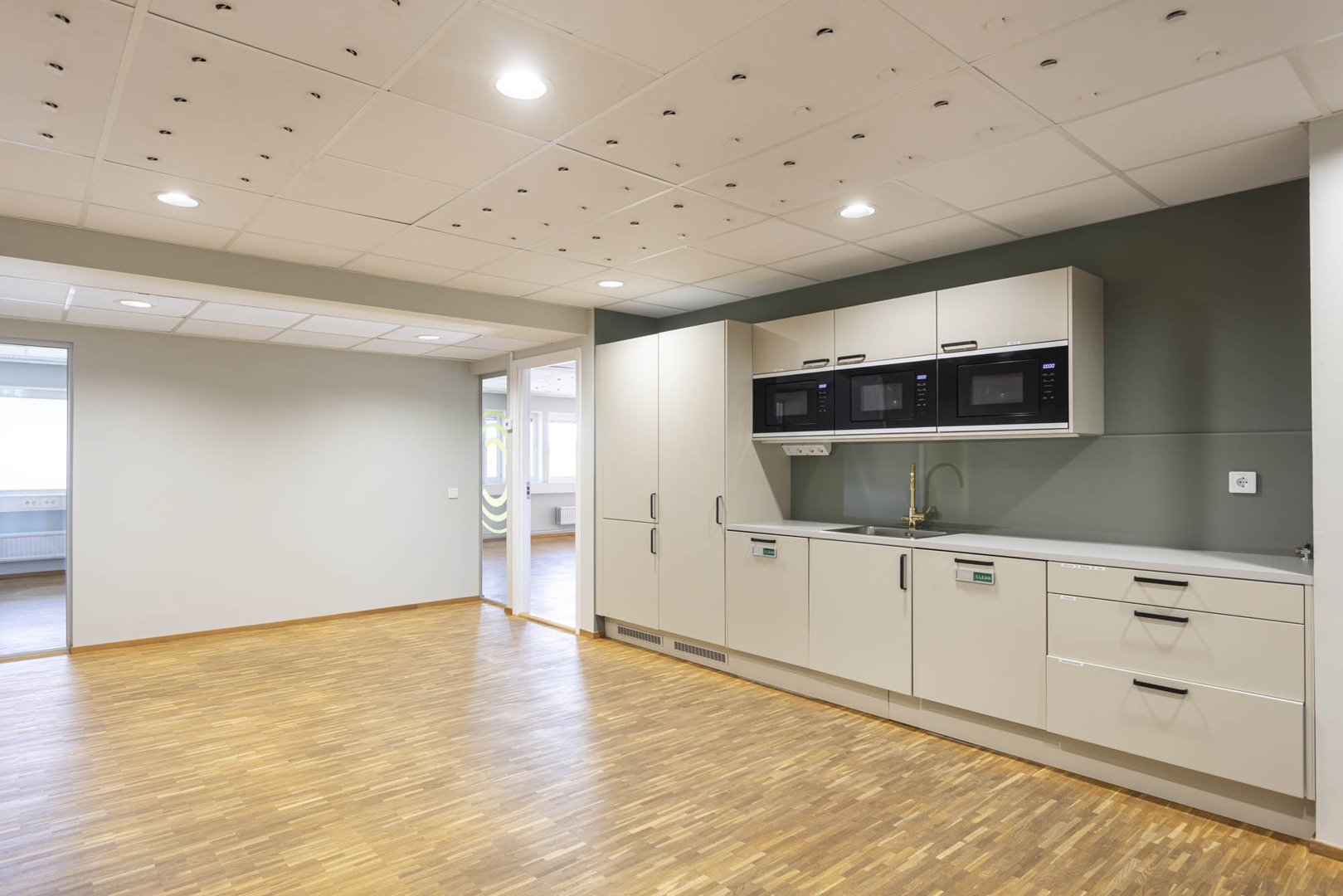 Lokalen har en modern och effektiv planlösning med en kombination av öppet kontorslandskap, enskilda kontorsrum, mötesrum och sociala ytor.