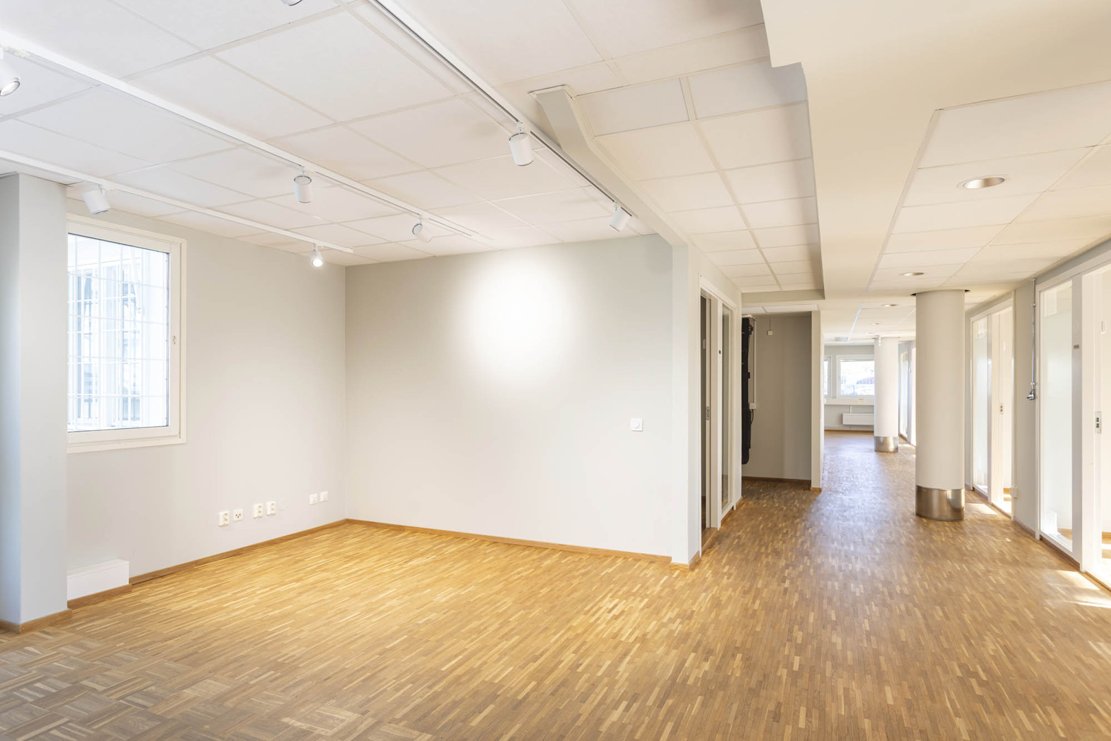 Lokalen är ljus och trivsam, med fina fönsterpartier längs hela fasaden och ett luftigt ljusgårdsparti som skapar en inspirerande arbetsmiljö.