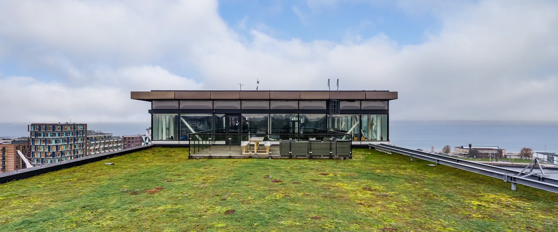 Som krona på verket finns en rymlig terrass med panoramavy över havet och stadens takåsar - en unik miljö för event, mingel eller en stunds avkoppling.