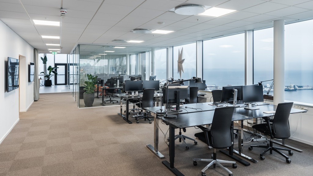 Välkommen till en kontorslokal utöver det vanliga! Här, på plan 9, erbjuds en arbetsmiljö med slående utsikt över sundet från första parkett - en inspirerande vy som gör varje arbetsdag lite bättre.
