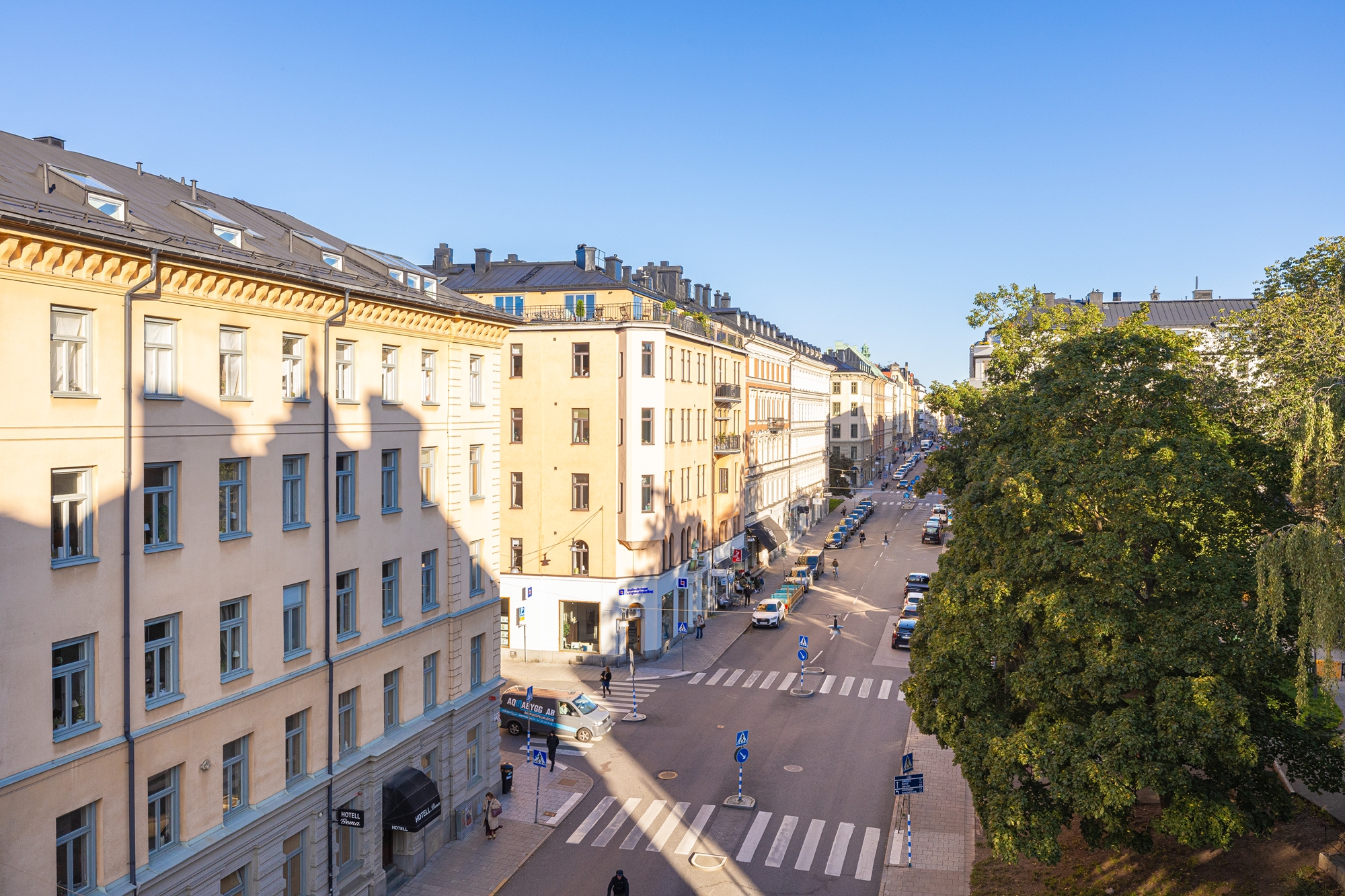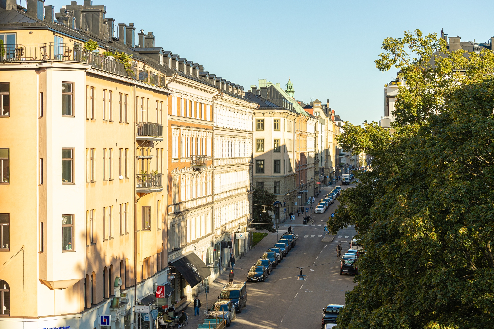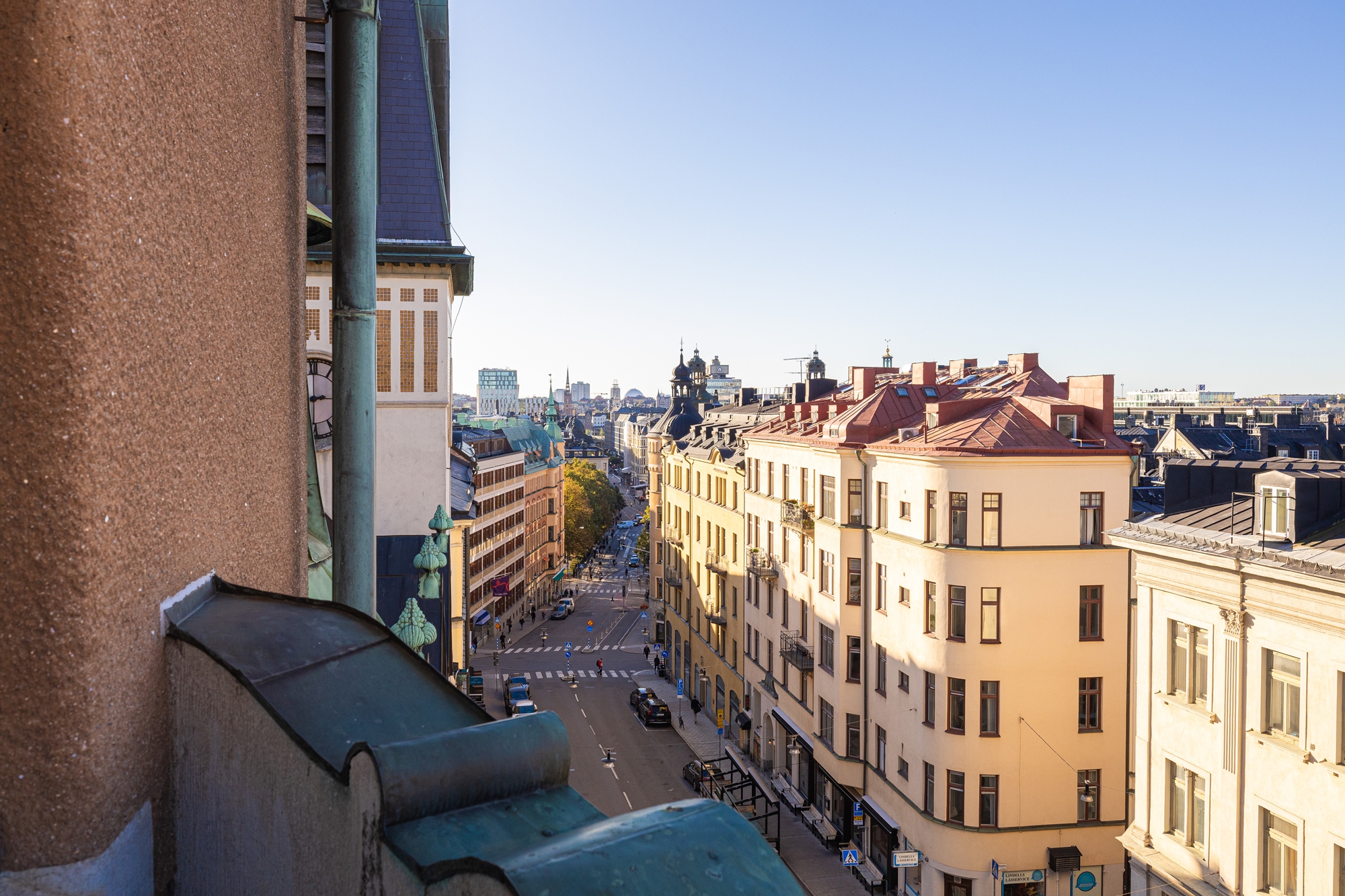 Genom de stora vackra fönstren mot Upplandsgatan och Tegnérlunden erbjuds ett generös ljusinsläpp och utsikt över takåsarna!