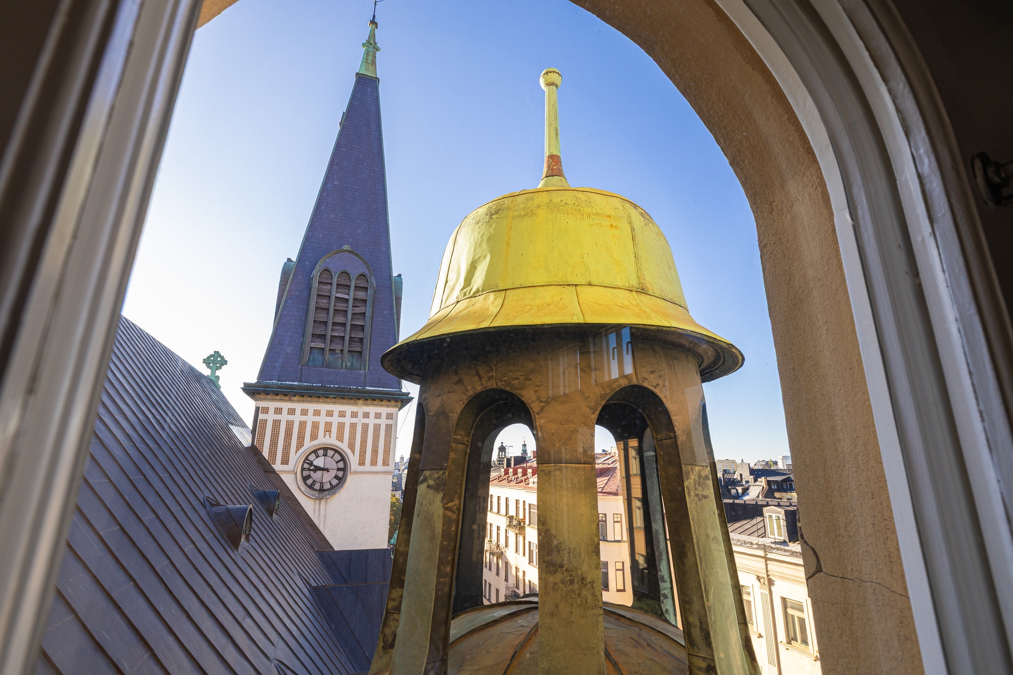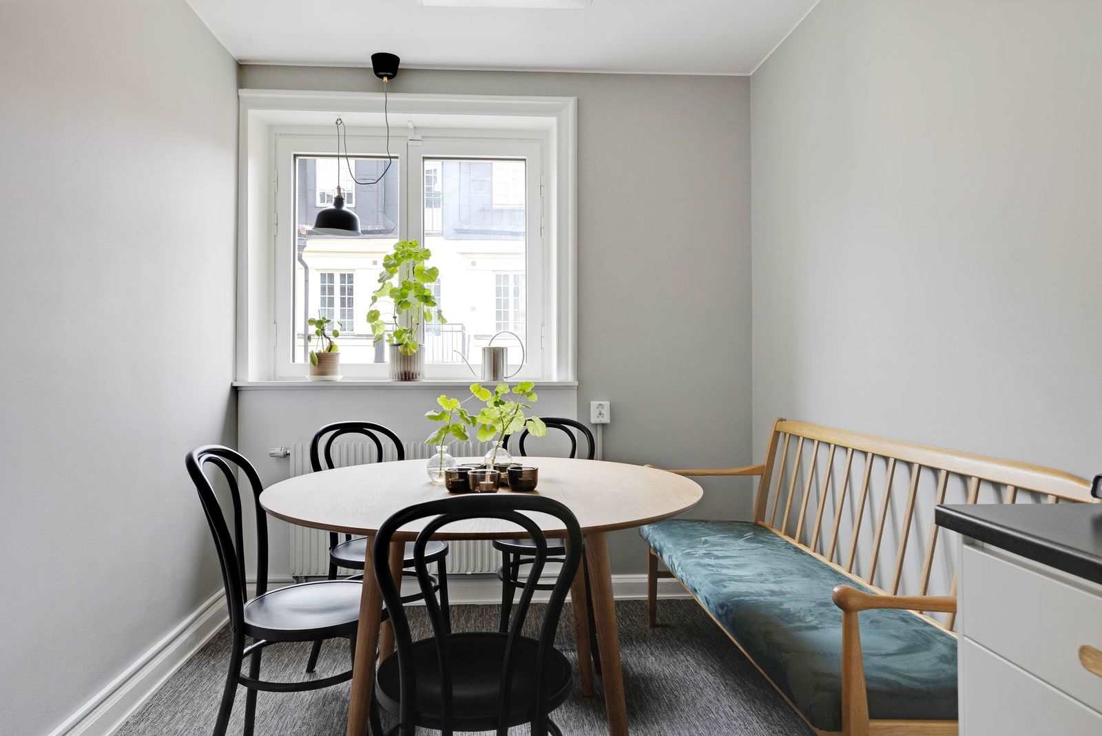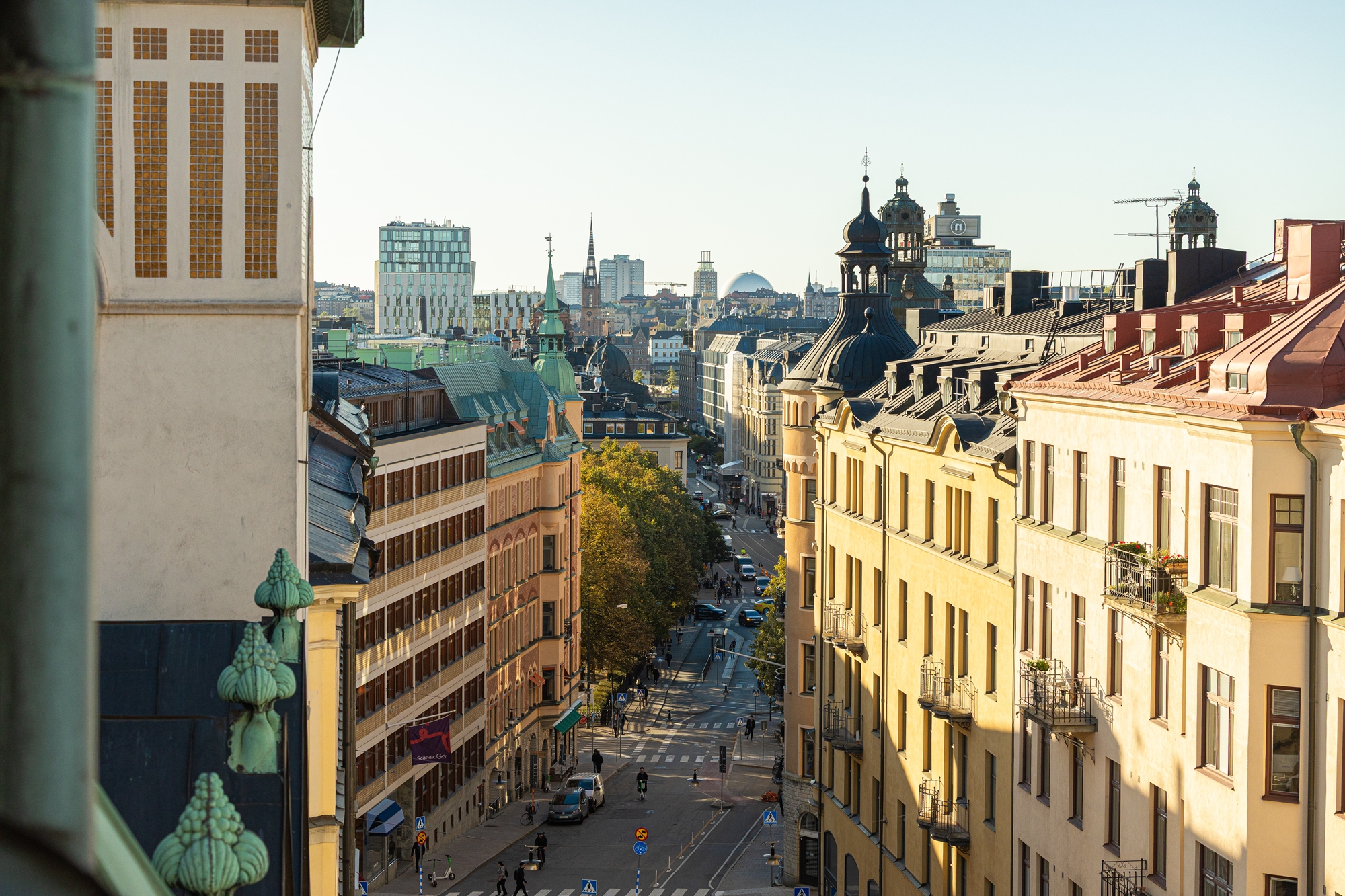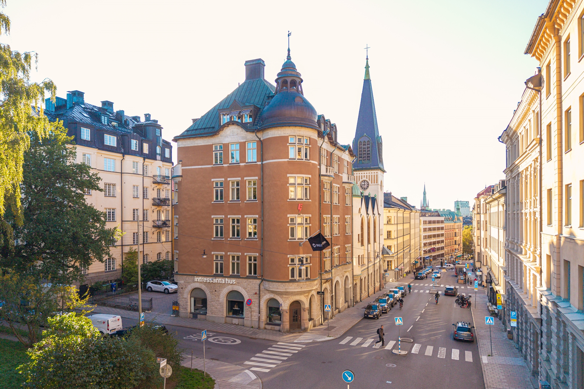 Genom de stora vackra fönstren mot Upplandsgatan och Tegnérlunden erbjuds ett generös ljusinsläpp och utsikt över takåsarna!