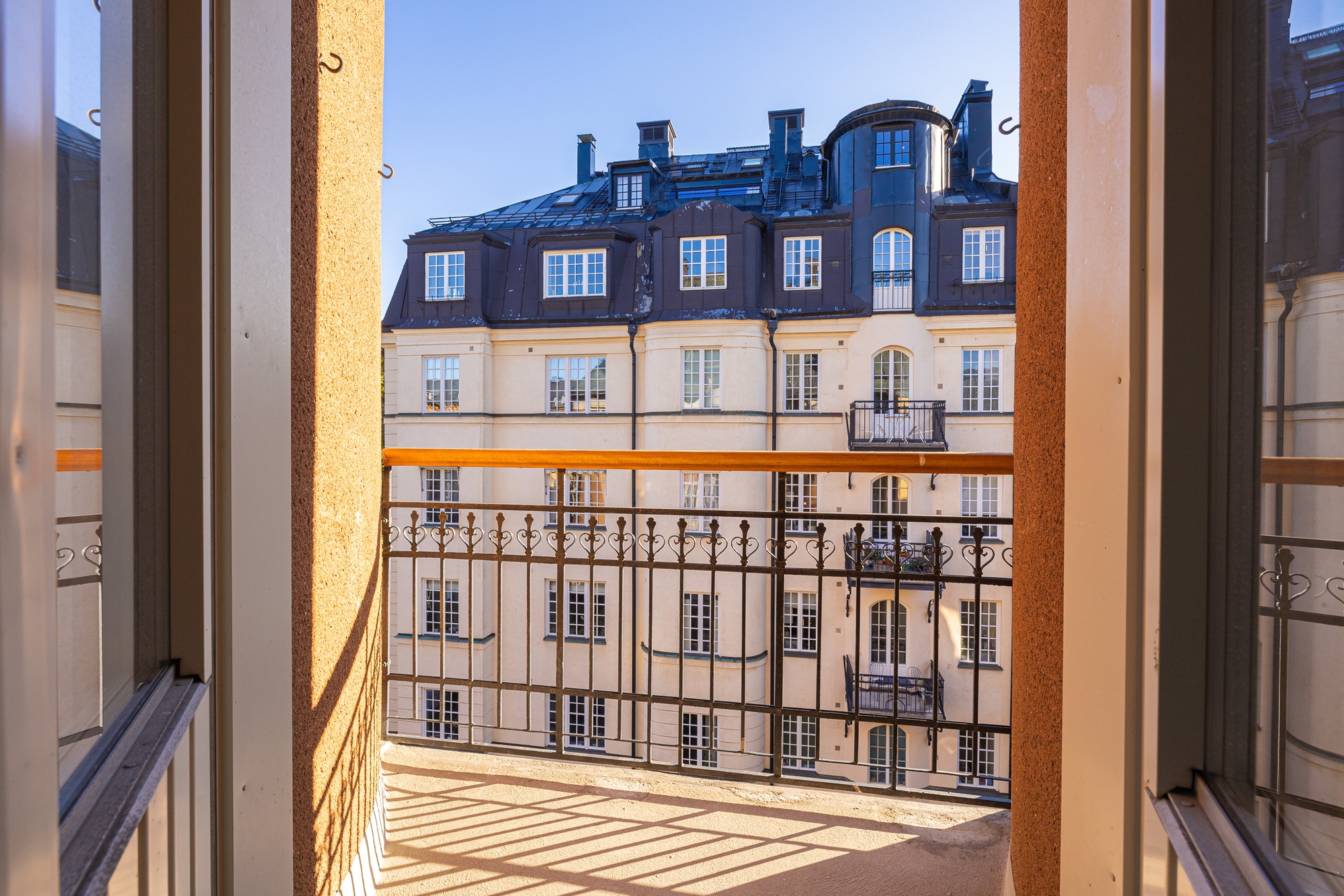- Totalt 3 st balkonger, varav 2 st ut mot Upplandsgatan och 1 st mot innergård/Tegnérlunden