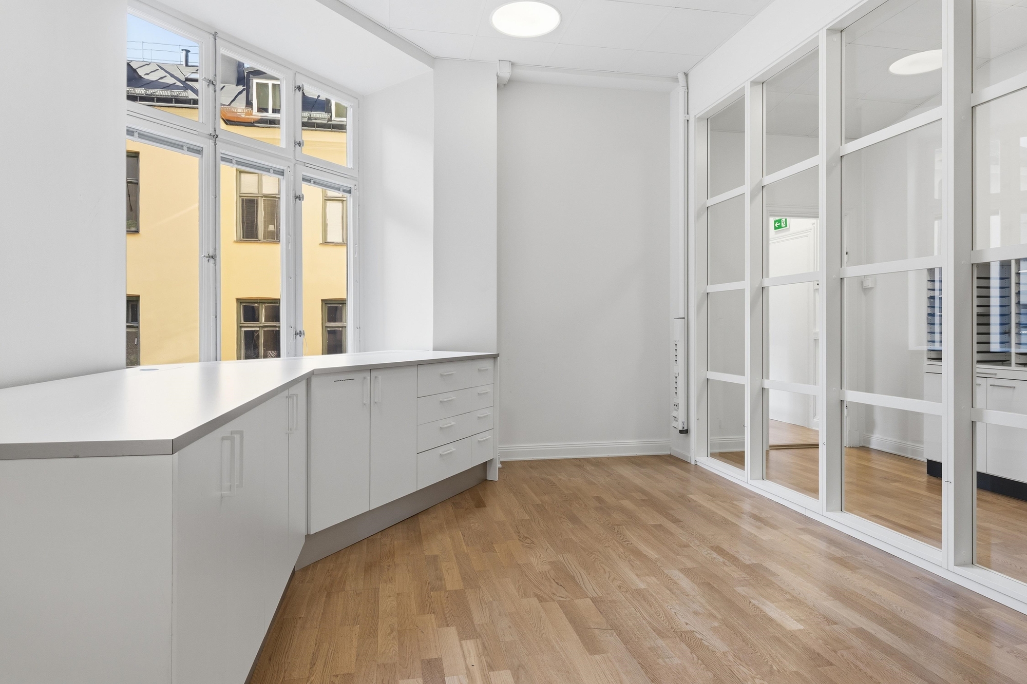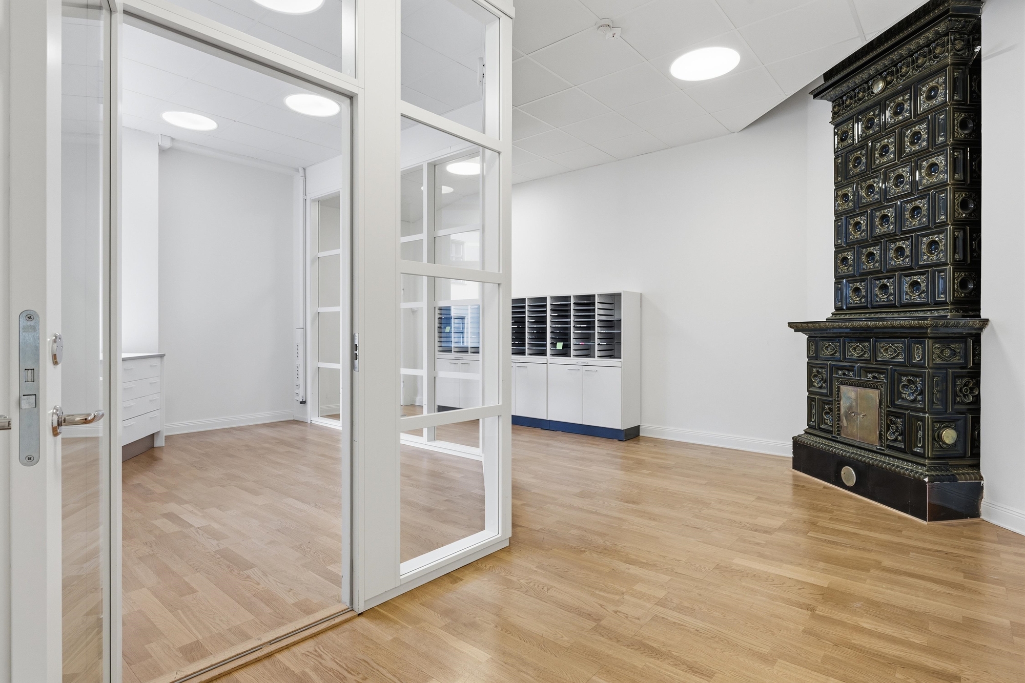 Lokalen kombinerar på ett fint sätt den klassiska charmen från en fastighet med anor från sent 1800-tal med moderna arbetsplatsbehov.