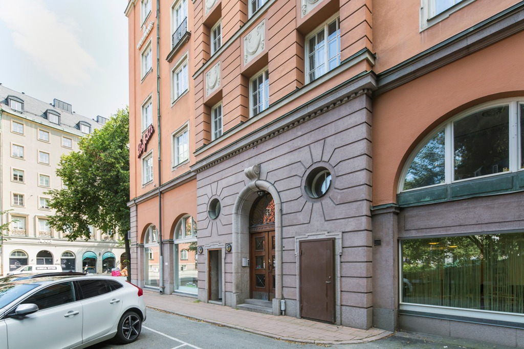 Omgivningen är levande längs en av Stockholms mest ikoniska stadsgator. Humlegården ligger ett stenkast bort och förser området med en grön oas för lunchpromenader eller avkoppling. Ett kvarter bort ligger Stureplan som är navet för Stockholms affärs- och nöjesliv.