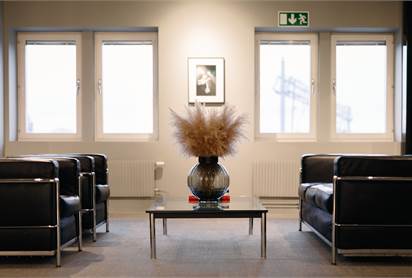 Vi har tagit fram ett förslag på en dynamisk kontorslösning, som erbjuder både öppna landskap och egna rum - här finns givetvis utrymme för förändringar, så att kontoret passar just er. Bilderna visar på möjliga ytskikt, men även här ges ni möjlighet att påverka beslut i projekteringsstadiet. Genom entrén möts ni av välkomnande externa ytor, där samarbeten och dialoger med kunder och besökare får ta stor plats - för att sedan kliva in i er interna del där ni får tillfälle att fritt gestalta ert arbete.