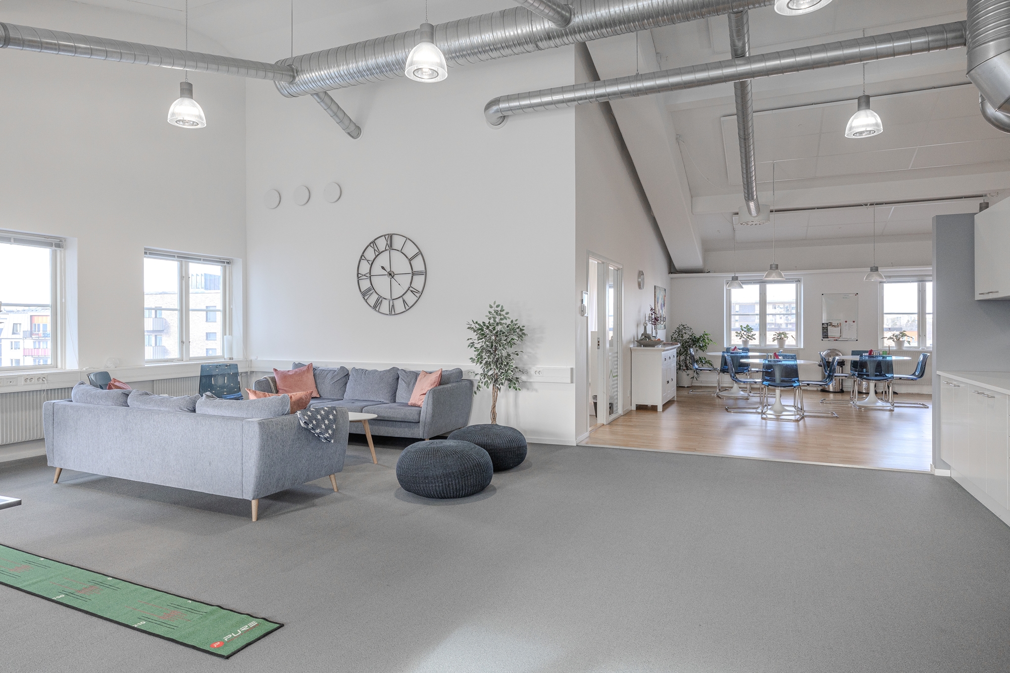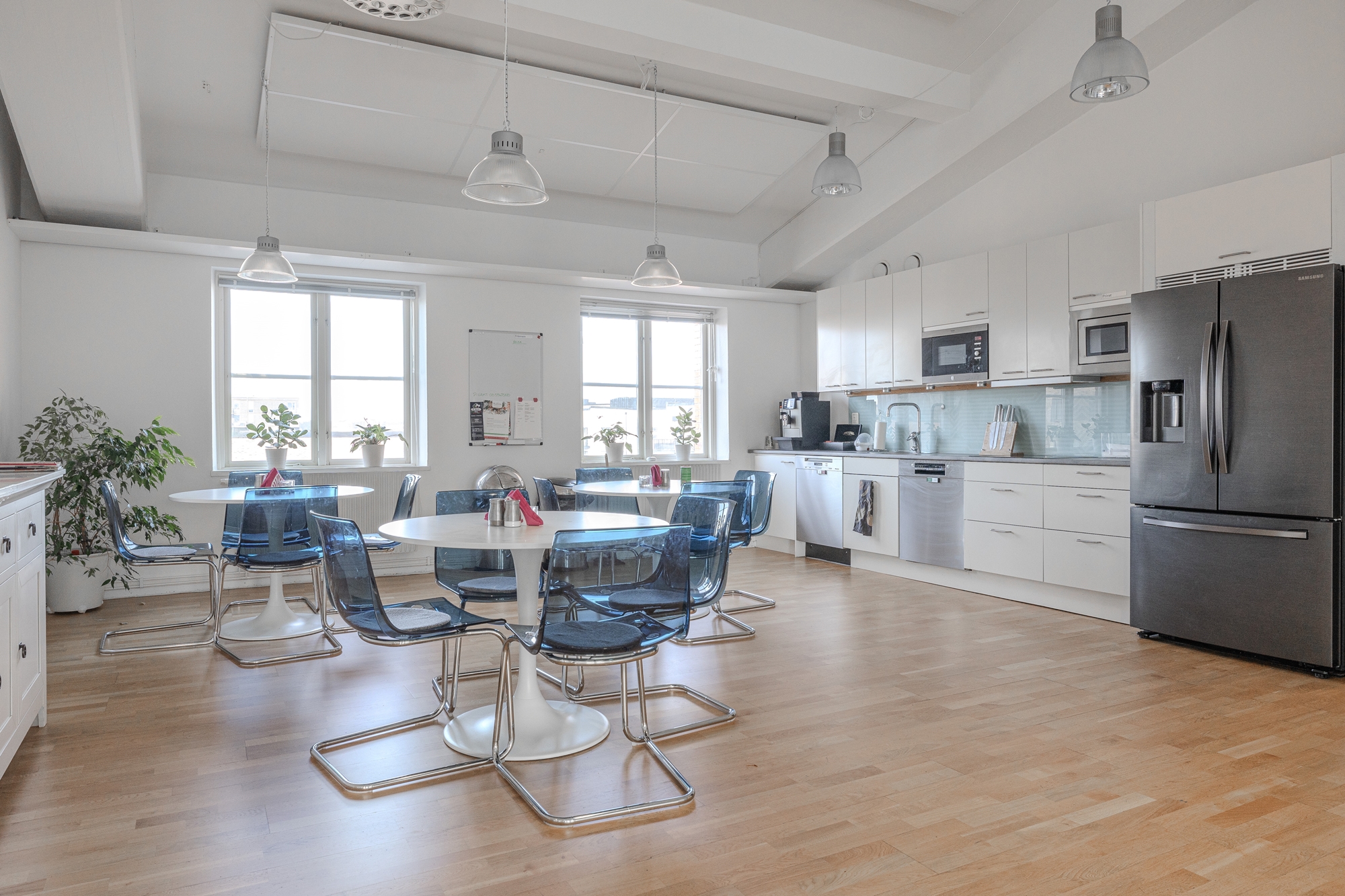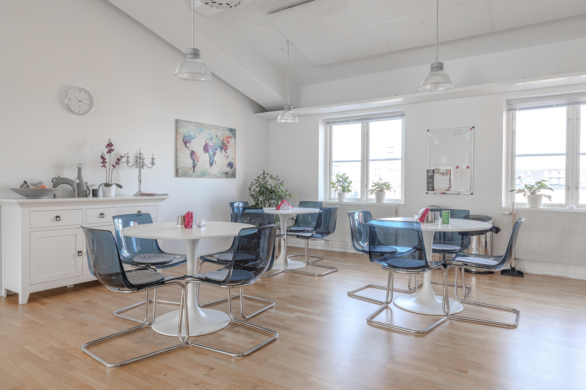 Lokalen har ljusa fina ytskikt och är belägen högst upp i fastigheten vilket ger ett fint dagsljusinsläpp från fyra väderstreck.
