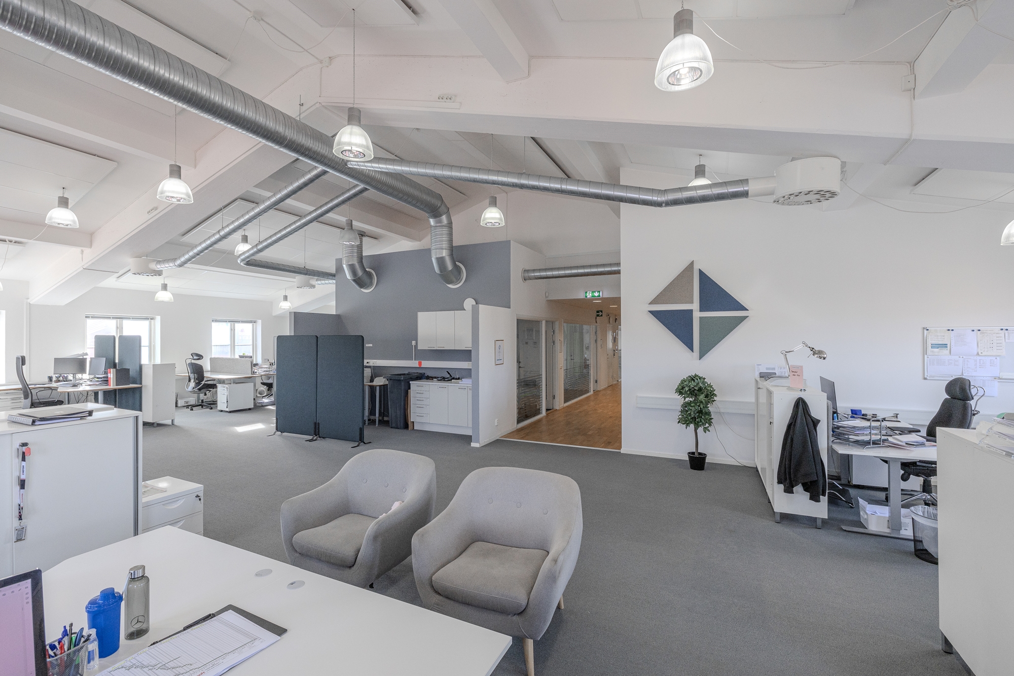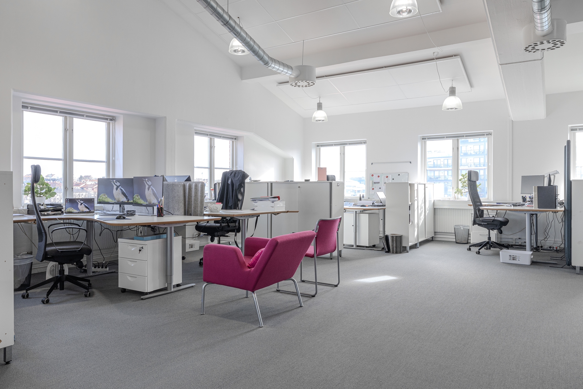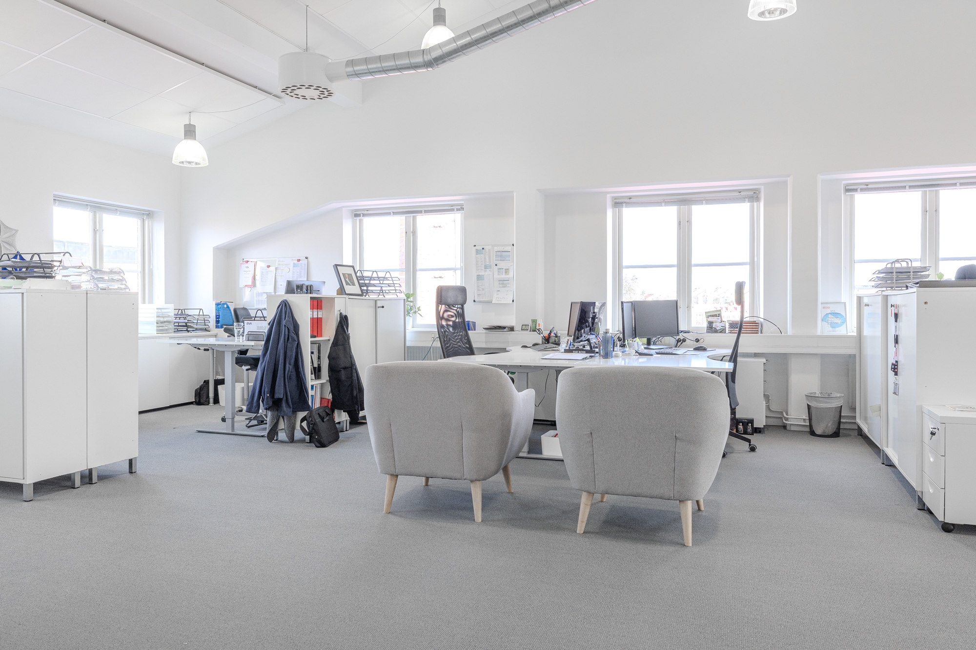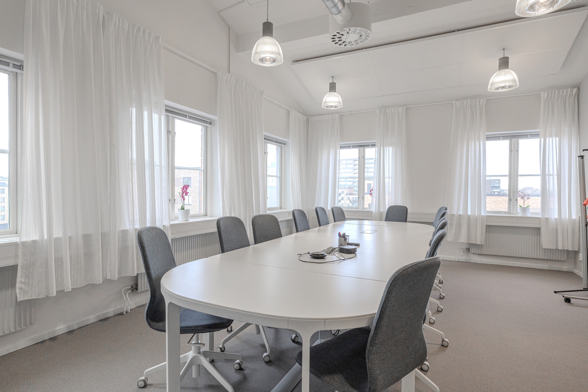 Lokalen har ljusa fina ytskikt och är belägen högst upp i fastigheten vilket ger ett fint dagsljusinsläpp från fyra väderstreck.