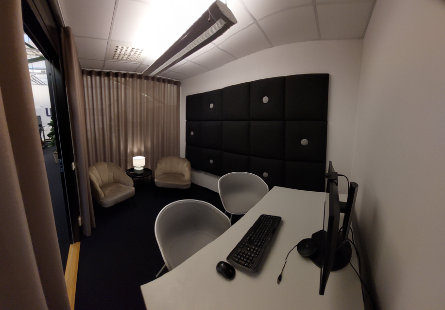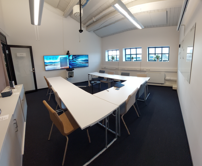 Ytskikten är noga utvalda för att skapa en stilren och professionell atmosfär, med detaljer som exponerade takbjälkar, industriglas och snygga golv i en harmonisk färgskala. Här finns alla förutsättningar för en effektiv och trivsam arbetsdag oavsett om du jobbar enskilt eller i team.
