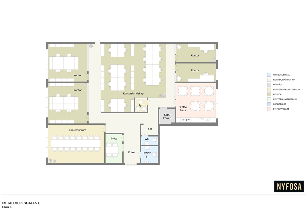 Lokalen erbjuder en smart och flexibel planlösning med en mix av privata kontorsrum, öppna kontorslandskap och välutrustade mötesrum. De stora fönsterpartierna släpper in rikligt med dagsljus och förstärker den öppna känslan i hela lokalen.