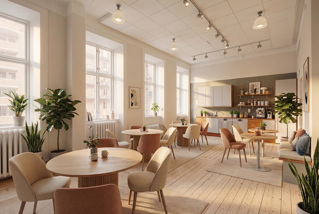 Delar av bildmaterialet är visualiseringar av möjlig användning av lokalen.