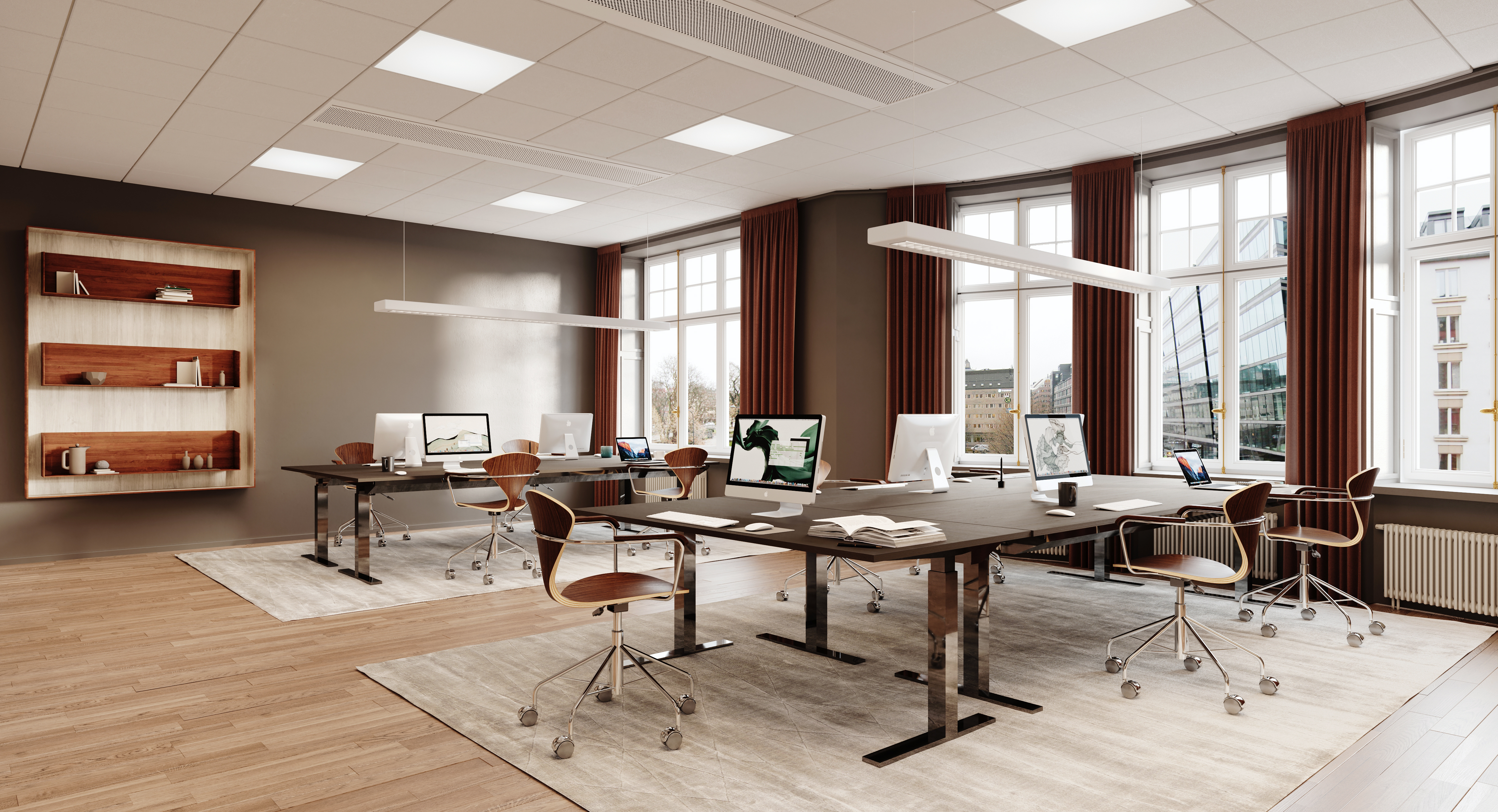 Lokalen erbjuder kontorsrum, mötesrum, lounge, kök och WC. Innergård och balkong bidrar till en ljus och trivsam arbetsmiljö.